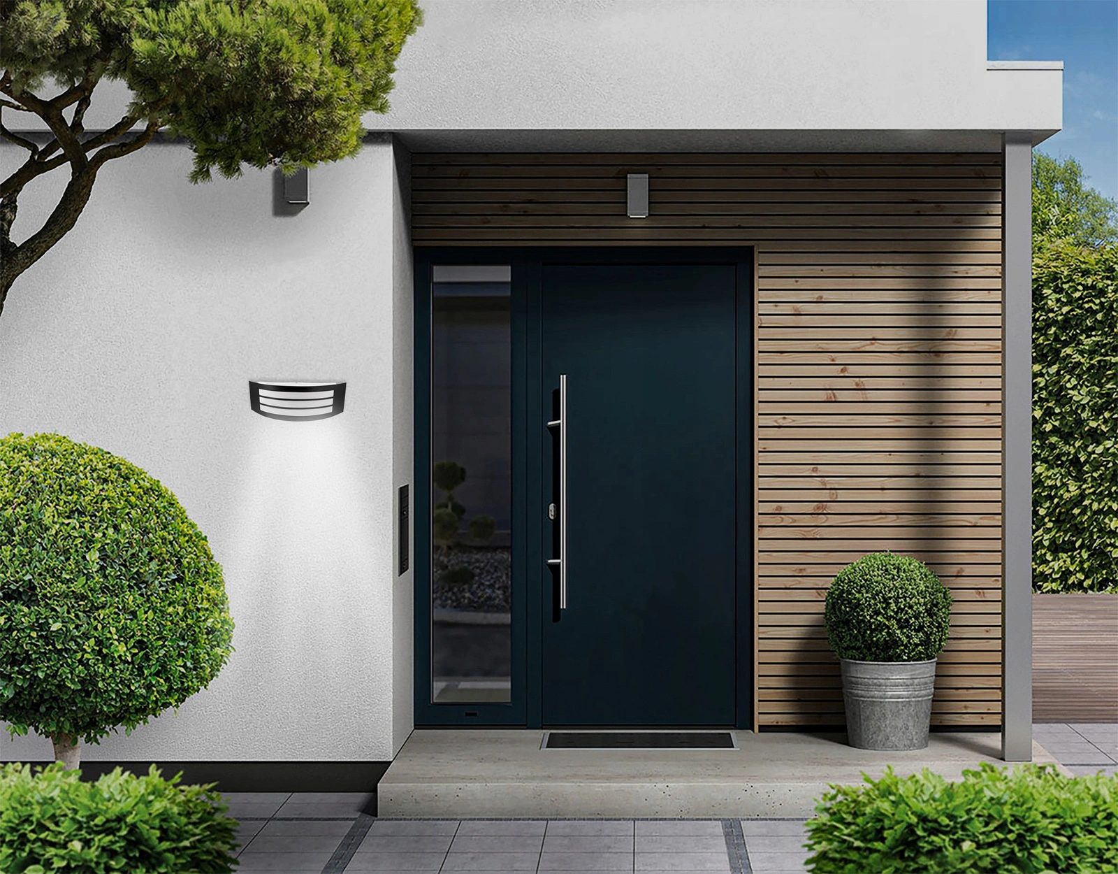 - Beleuchtung des Hauseingangs – Wandlampen in der Nähe der Eingangstür sind nicht nur eine effiziente Lichtquelle, sondern auch eine Dekoration, die Ihrem Anwesen Klasse verleiht.