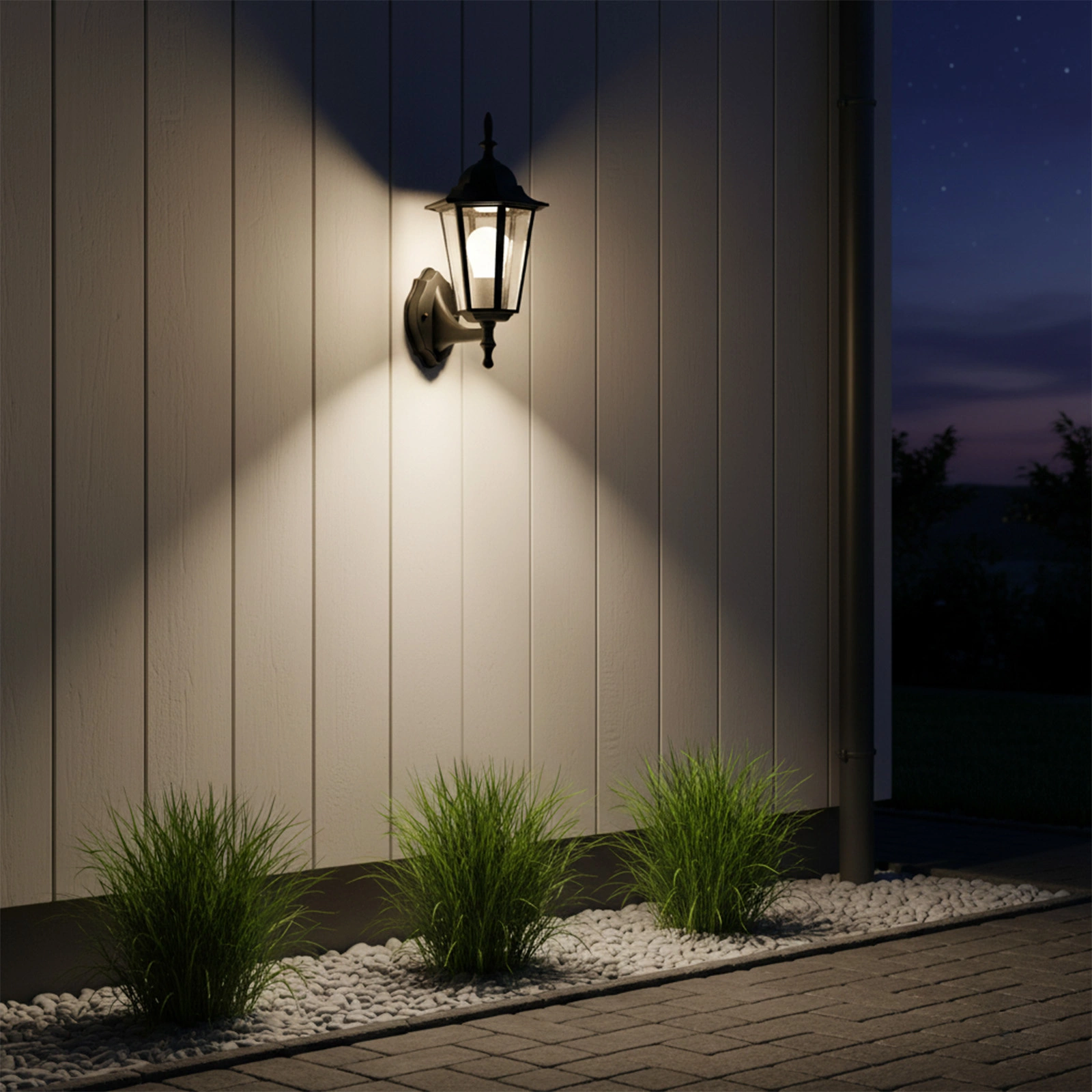 Die angebotene schwarze Leuchte zeichnet sich vor allem durch ihr schönes Aussehen und die einfache und problemlose Wandmontage aus. Die Leuchte kann mit Lichtquellen mit einer Standard- E27- Fassung verwendet werden . Das Produkt stellt nicht nur eine effektive Lichtquelle dar, die Ihre Plätze effektiv beleuchtet, sondern ist auch eine hervorragende Dekoration für Ihren Garten.