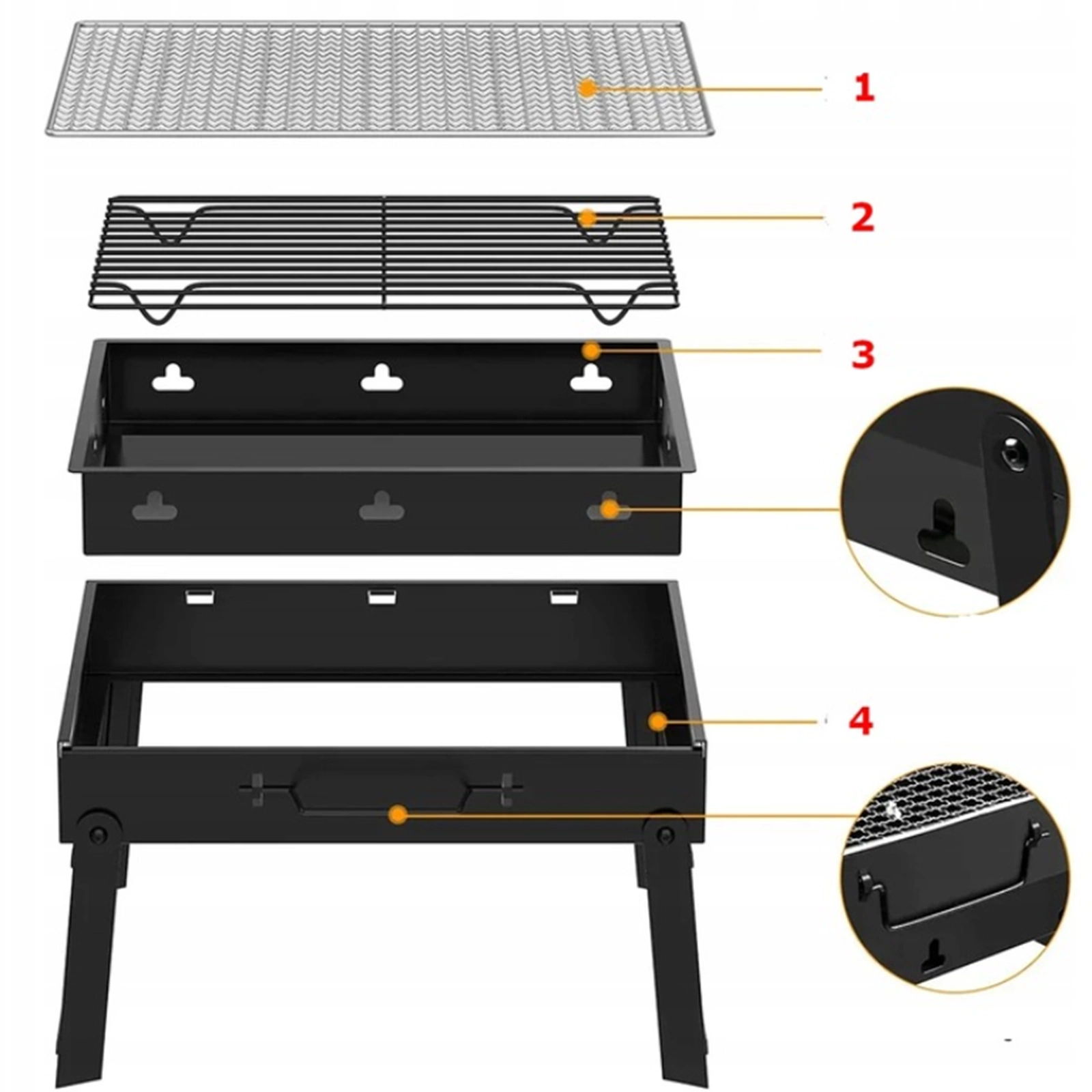 - ✔ Klappbarer Holzkohlegrill – im handlichen Kofferstil