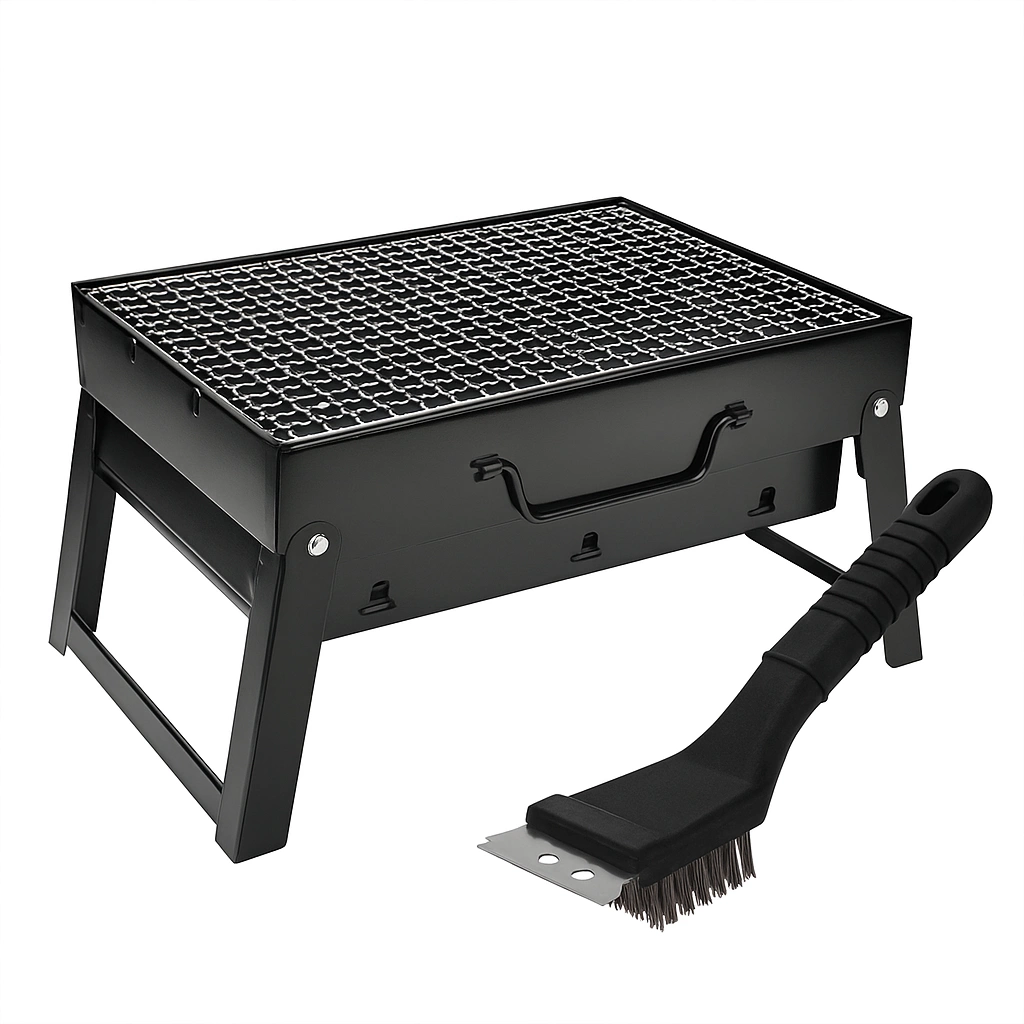 Praktisches Grillset: Klappgrill + 2-in-1 Reinigungsbürste