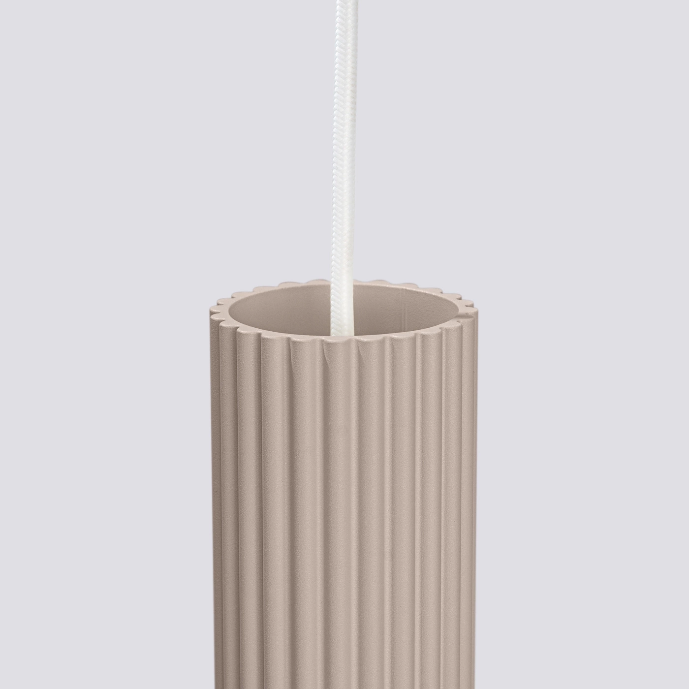 - Minimalistisches Design: Die elegante, geriffelte Struktur und die röhrenförmige Form der Leuchte fügen sich perfekt in die moderne Innenarchitektur ein.
