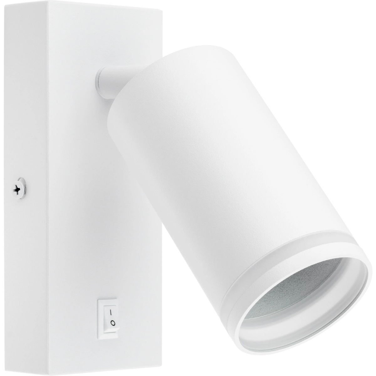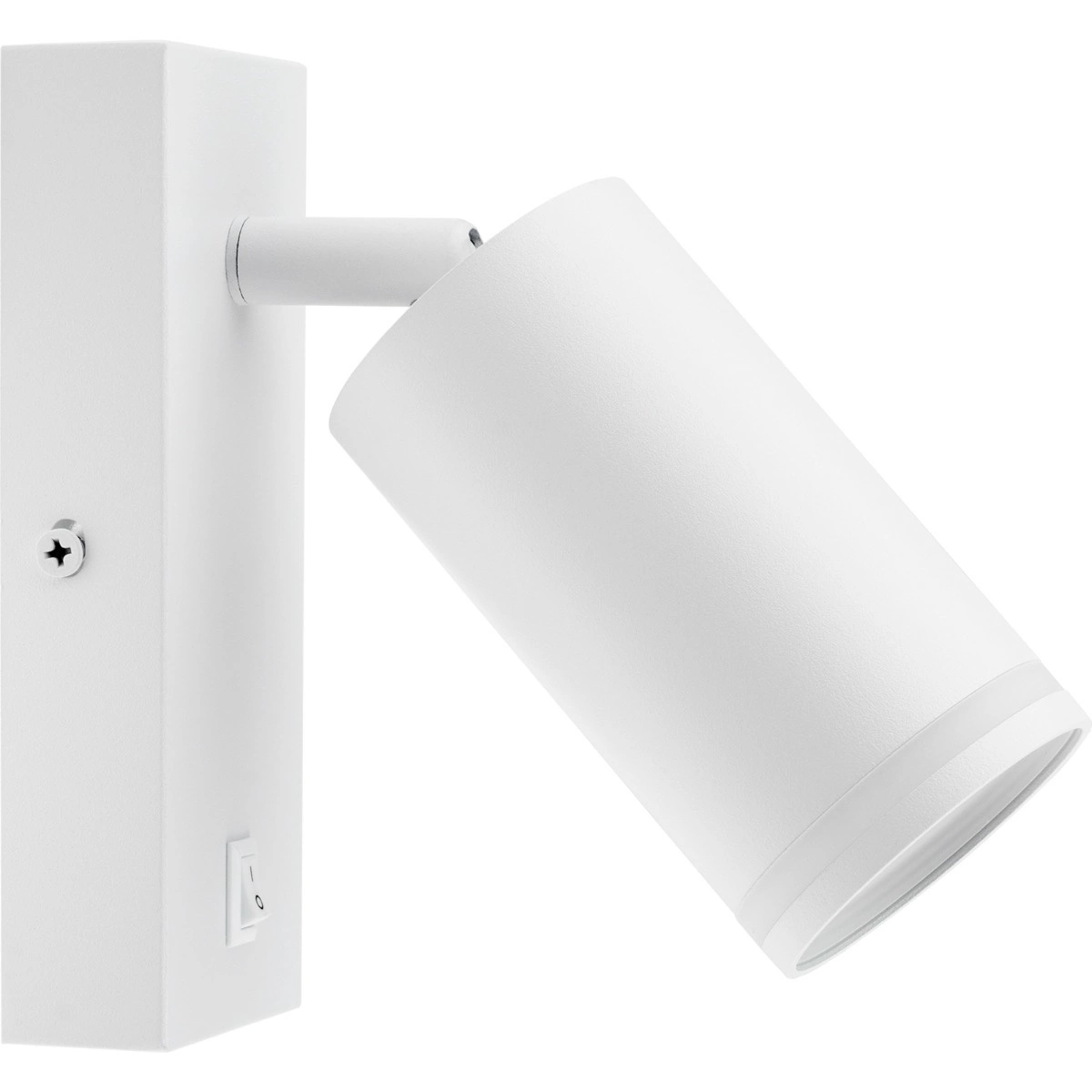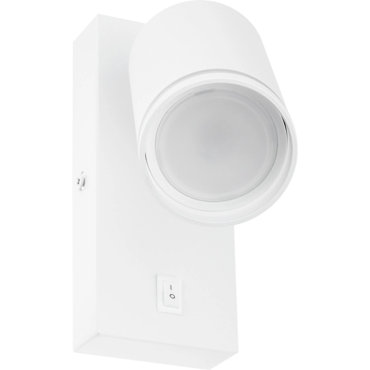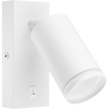 Weiße Wandleuchte mit austauschbarer Lichtquelle mit GU10- Sockel . Die Lampe ist aus hochwertigem Stahl, Aluminium und Acryl gefertigt und verfügt über einen dekorativen Ring . Die Lampe verfügt über einen Leseschalter , mit dem Sie das Licht einfach einschalten können.