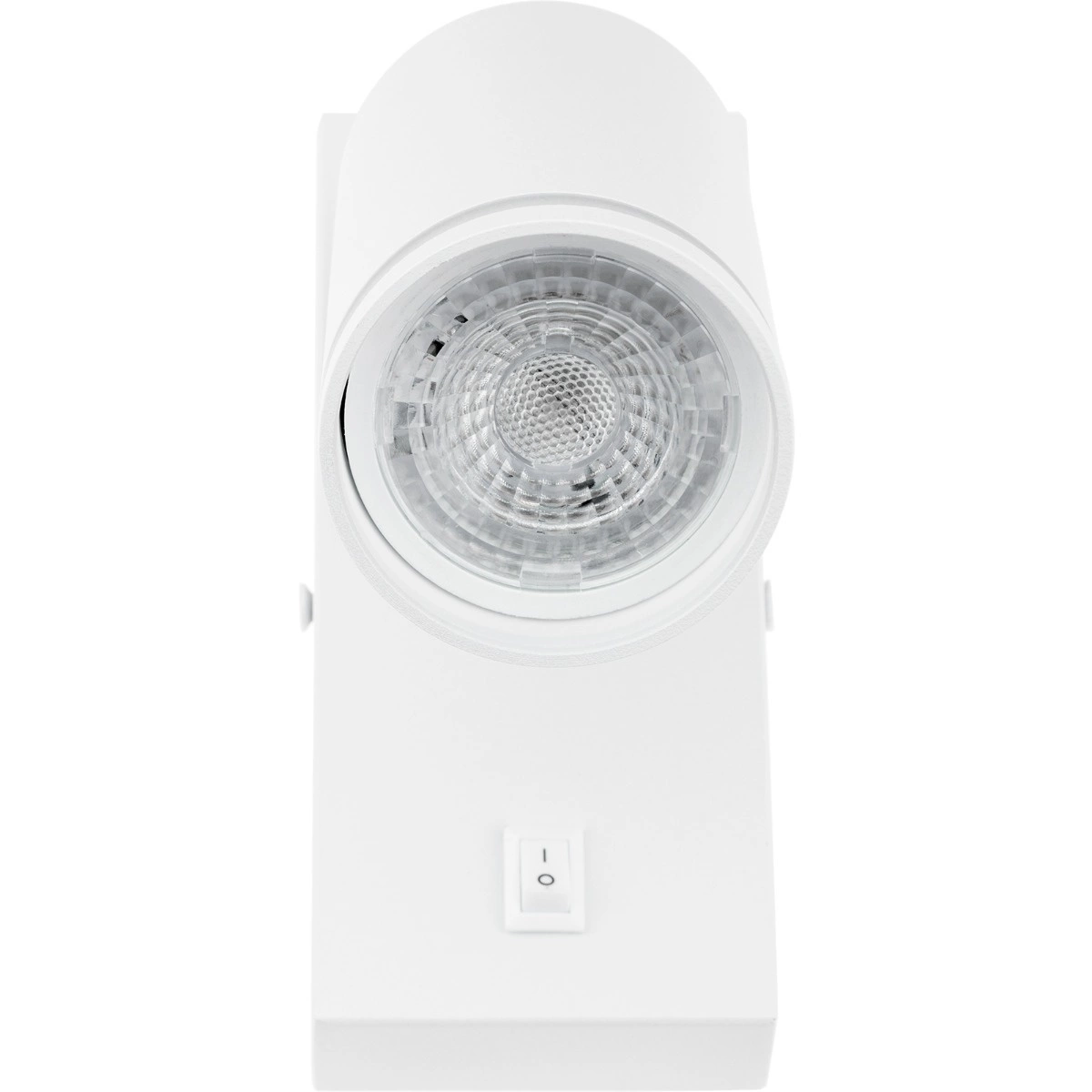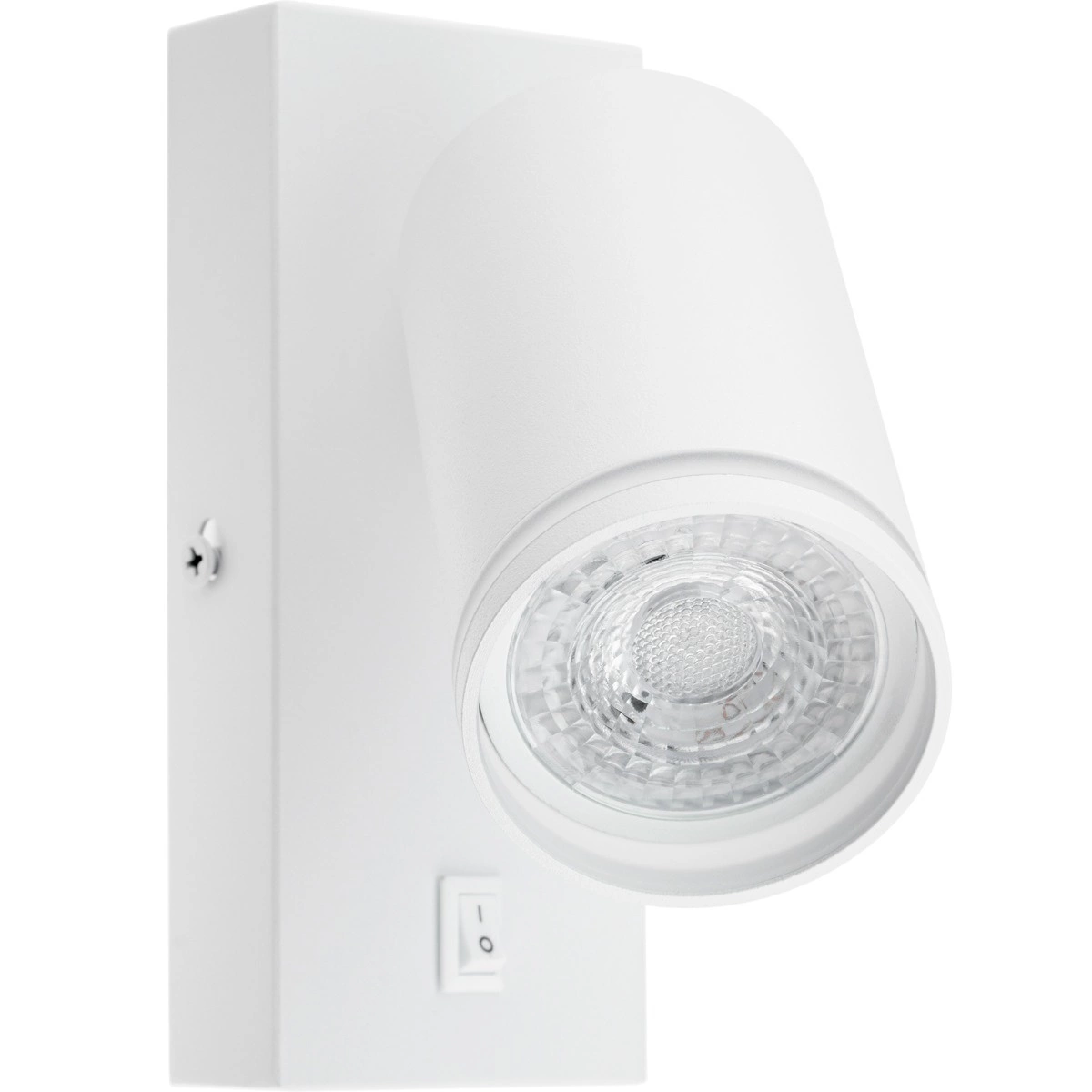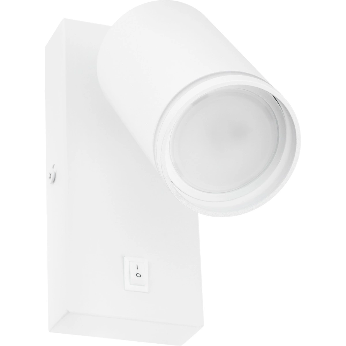 Weiße Wandleuchte mit austauschbarer Lichtquelle mit GU10- Sockel . Die Lampe ist aus hochwertigem Stahl, Aluminium und Acryl gefertigt und verfügt über einen dekorativen Ring . Die Lampe verfügt über einen Leseschalter , mit dem Sie das Licht einfach einschalten können.