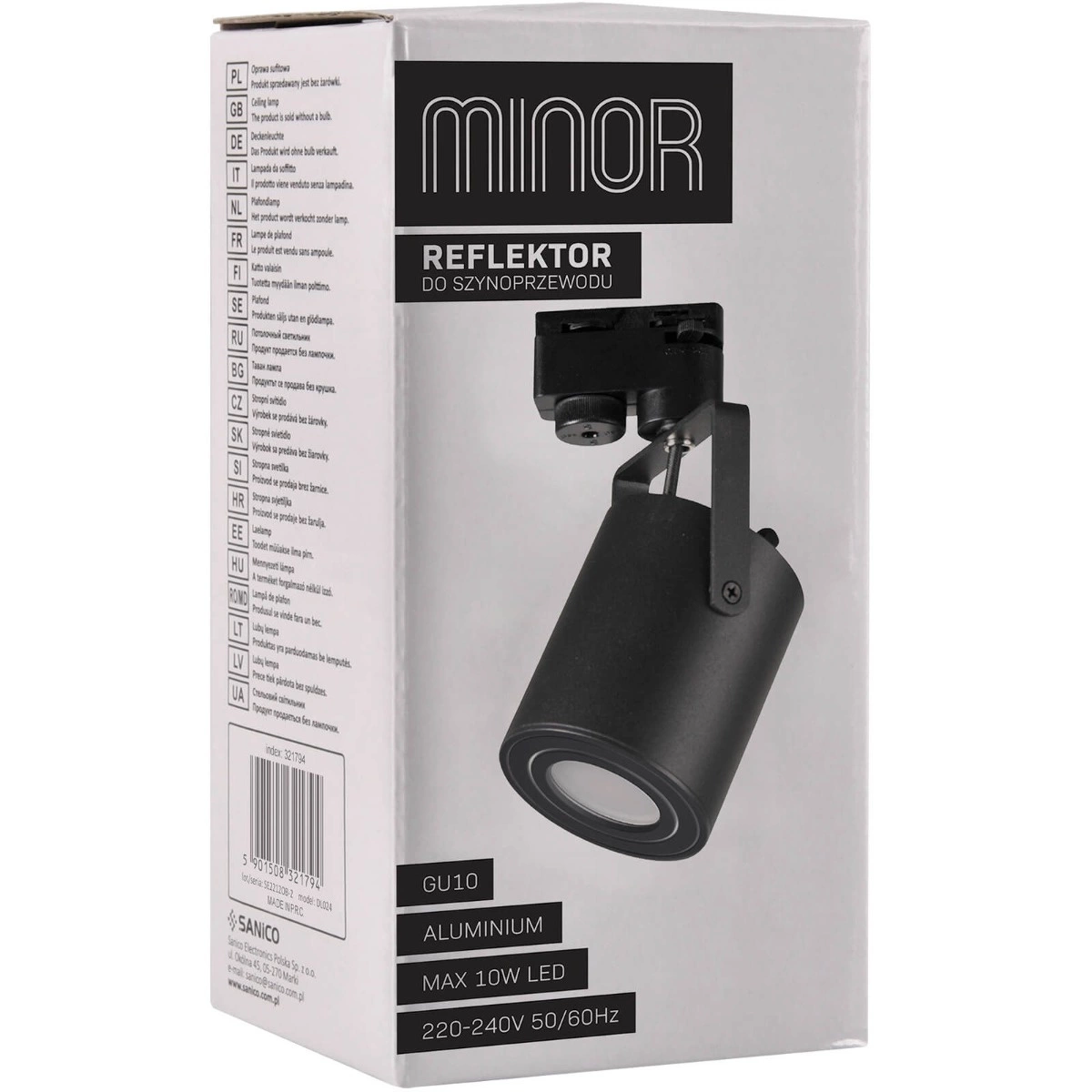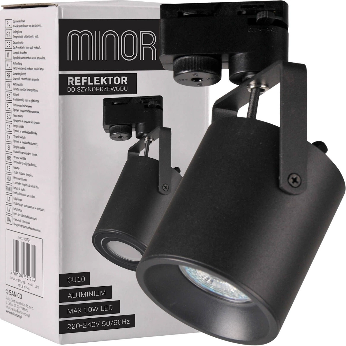 Schwarzer Schienenstrahler mit der Möglichkeit der Montage einer Glühbirne mit Gewinde GU10 mit einer maximalen Leistung von 10W, konzipiert für schienenmontiert. Die Leuchte ist ideal für Haus, Büro, Schaufenster oder Korridor. Der Strahler wurde in einem modernen, minimalistischen Design entworfen, das sich gut in eine Vielzahl von Innenräumen einfügt und ihnen einen einzigartigen Charakter verleiht. Dank seiner Konstruktion aus aluminium der Reflektor ist korrosionsbeständig und weist eine höhere Widerstandsfähigkeit gegen mechanische Beschädigungen auf. Die Lampe hat einstellbaren Lichteinfallswinkel, was es einfach macht, die Leuchte so zu positionieren, wie es Ihnen passt. Eine solche Lösung eignet sich sehr gut, um ausgewählte Elemente des Interieurs hervorzuheben, zu akzentuieren oder einfach intensiver zu beleuchten, z. B. einen Schreibtisch oder Tisch.