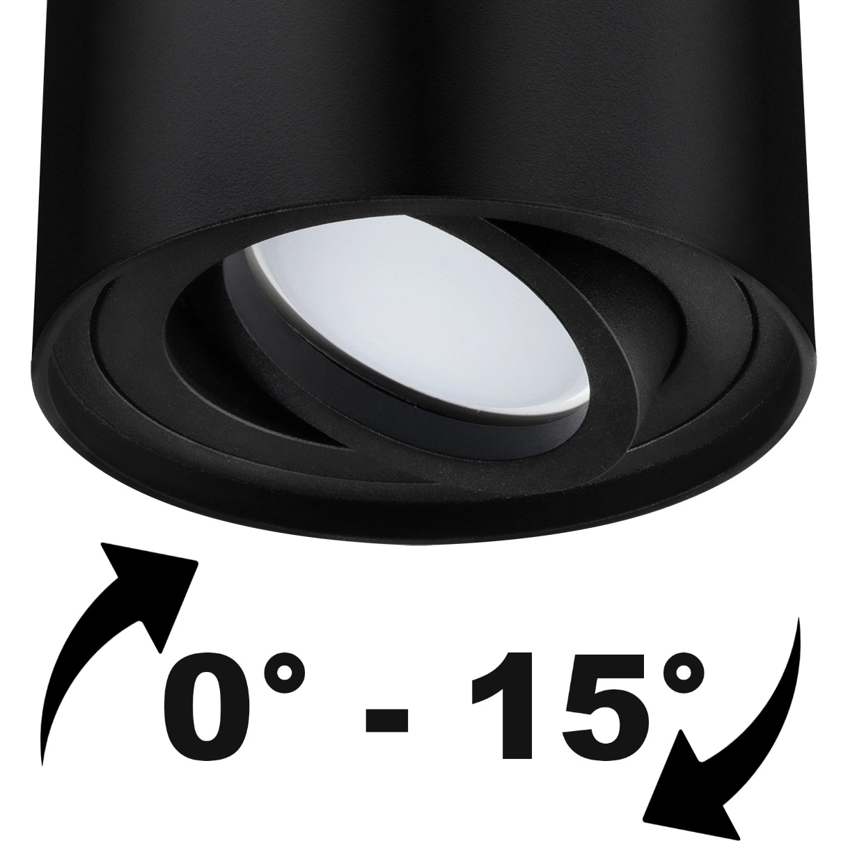 Halogen-Aufbauleuchte GU10, Aufbauspot 115mm beweglich Runde Tube Schwarz AMAT-L LUMILED
