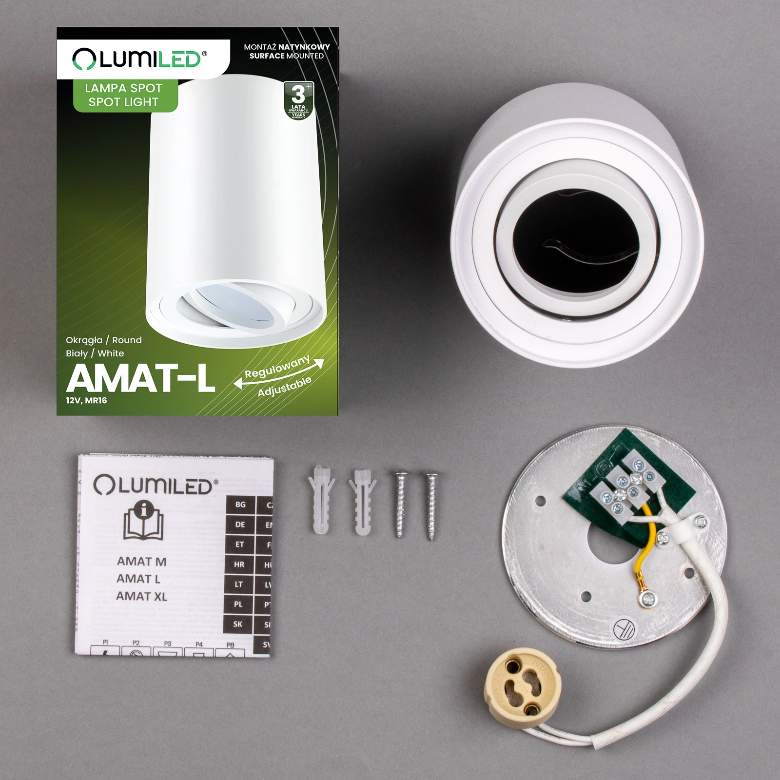 Halogen-Aufbauleuchte GU10, Aufbauspot 115mm beweglich Runde Tube Weiß AMAT-L LUMILED