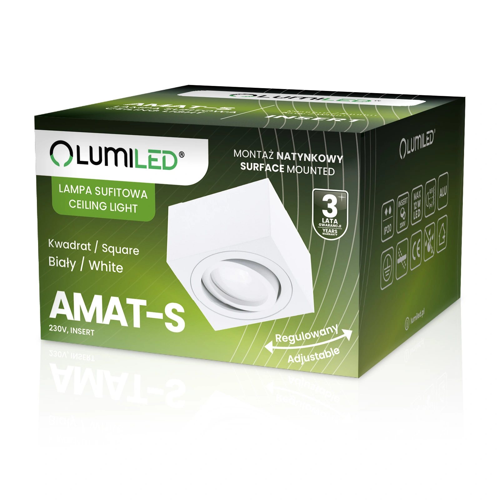 Die quadratische, weiß-matte Leuchte ist ein moderner Akzent, der sich perfekt in industrielle, minimalistische oder klassische Einrichtungen einfügt. Durch die geringen Abmessungen und die Anbaumontage eignet sich die Leuchte sowohl für Wohn- als auch für Geschäftsräume - ohne die Decke zu stören.