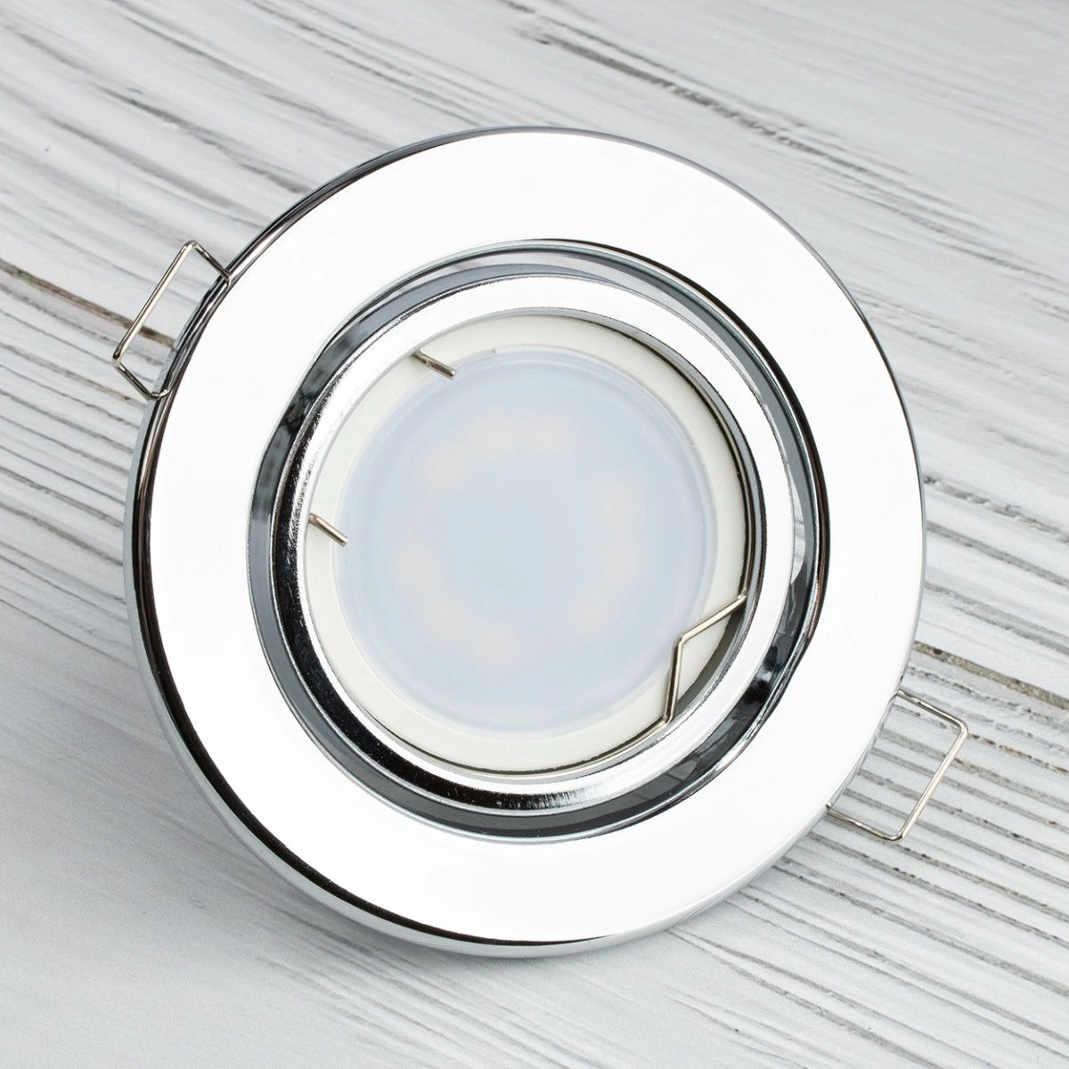 Bewegliche, runde Halogen-Einbauleuchte aus Chrom mit GU10-MR16-Blatt