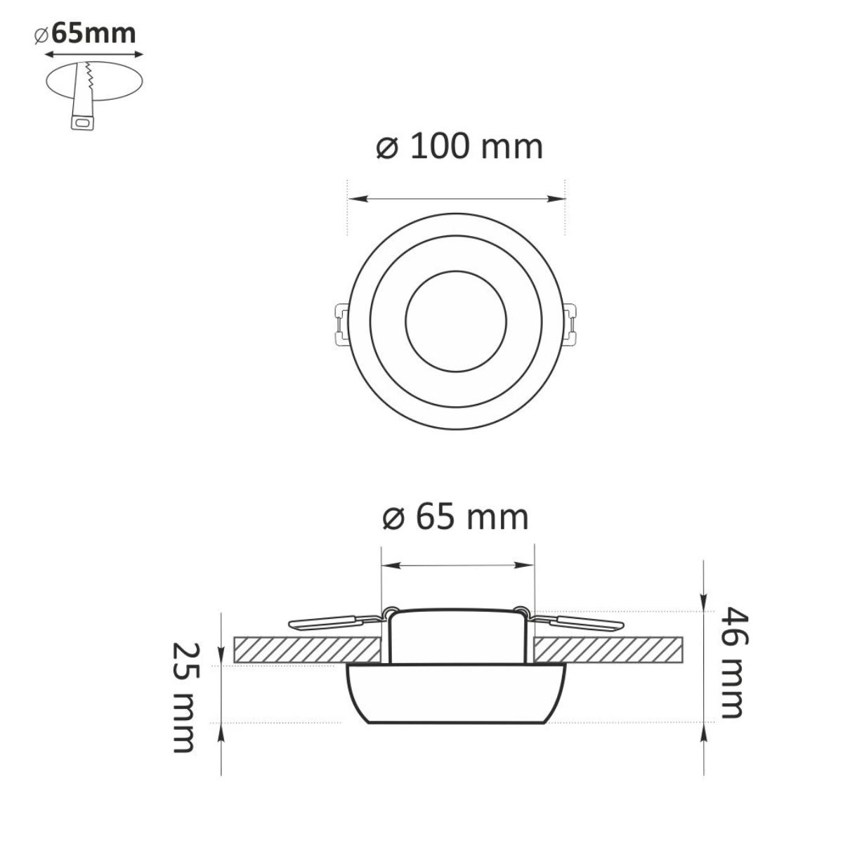 - Produkttyp: Feste, runde Einbauleuchte