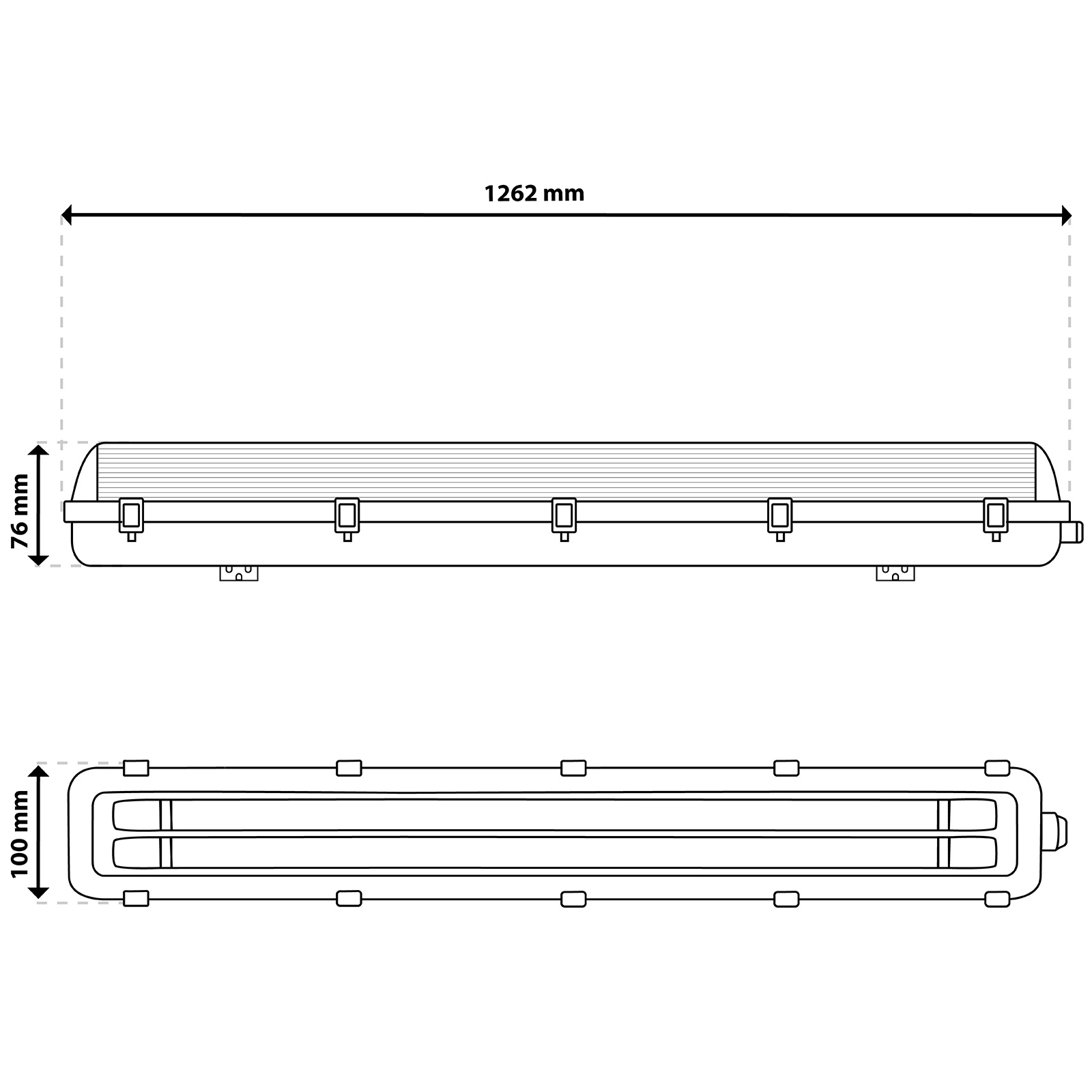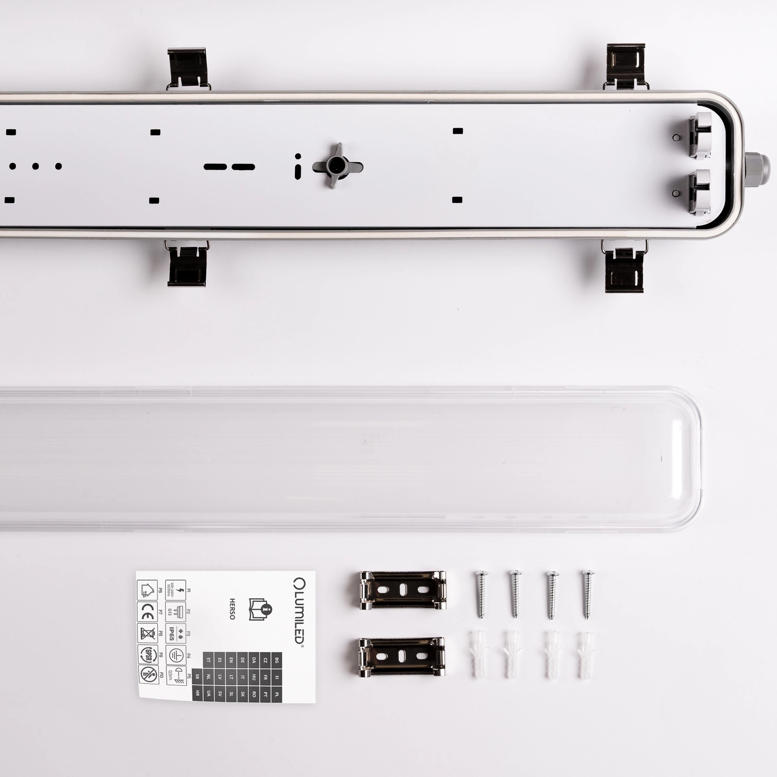 Hermetische Leuchte von LUMILED aus hochwertigem Kunststoff und Metall. Die Leuchte mit passenden LED-Leuchtstofflampen stellt die perfekte Kombination aus einer innovativen, modernen und zugleich langlebigen Lichtquelle dar.
