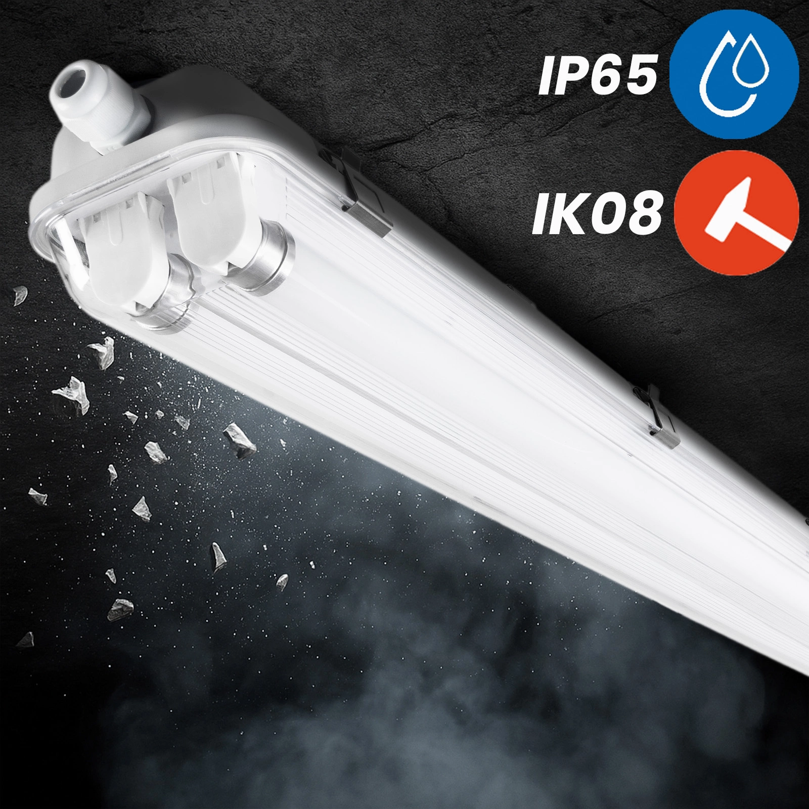 Die Leuchte verfügt über die hohe Dichtheitsklasse IP65 und eignet sich daher ideal für die Installation in Räumen mit hoher Staub- und Feuchtigkeitsbelastung .