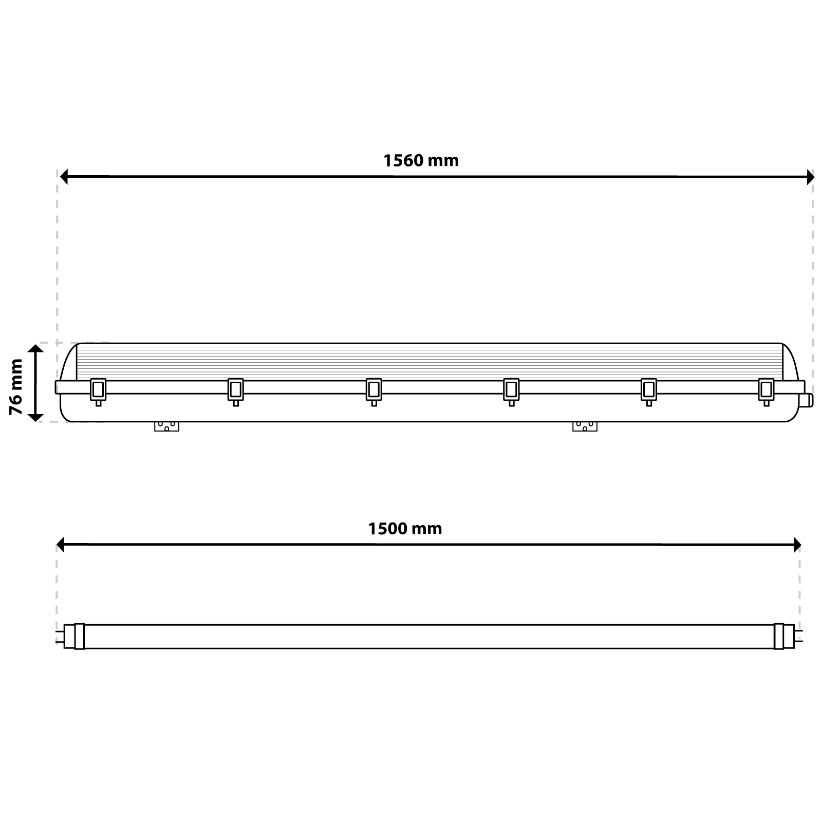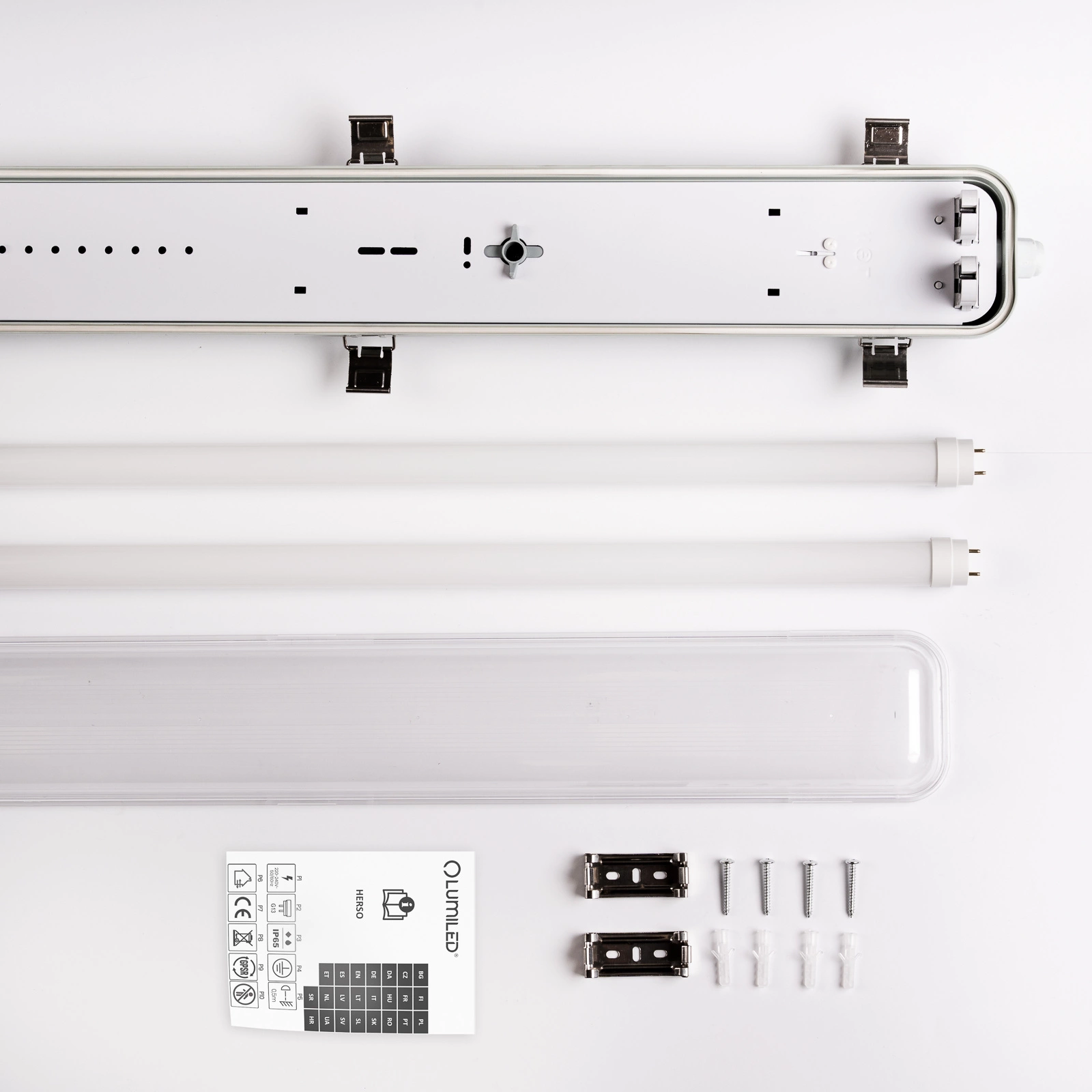 Hermetische Feuchtraumleuchte LED 2x T8, G13 Leuchte IP65 150cm+LED-Leuchtstofflampen 25W 4000K LUMILED