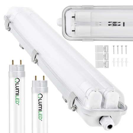 Hermetische Feuchtraumleuchte LED 2x T8, G13 Leuchte IP65 60cm+LED-Leuchtstofflampen 9W 4000K LUMILED