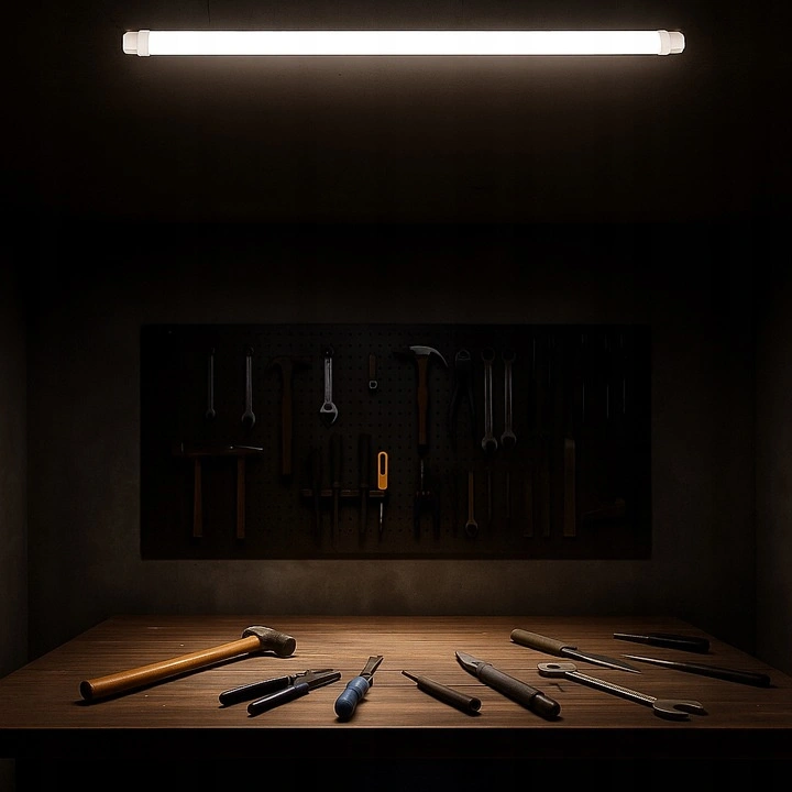 Die hermetische Leuchte in kalter Farbe und 120 cm Länge besteht aus hochwertigen Materialien und verfügt über eine hohe Dichtheitsklasse IP65, wodurch sie sich ideal für die Installation in Räumen mit hoher Staub- und Feuchtigkeitsbelastung eignet und vor Staub und ungünstigen Witterungsbedingungen schützt.