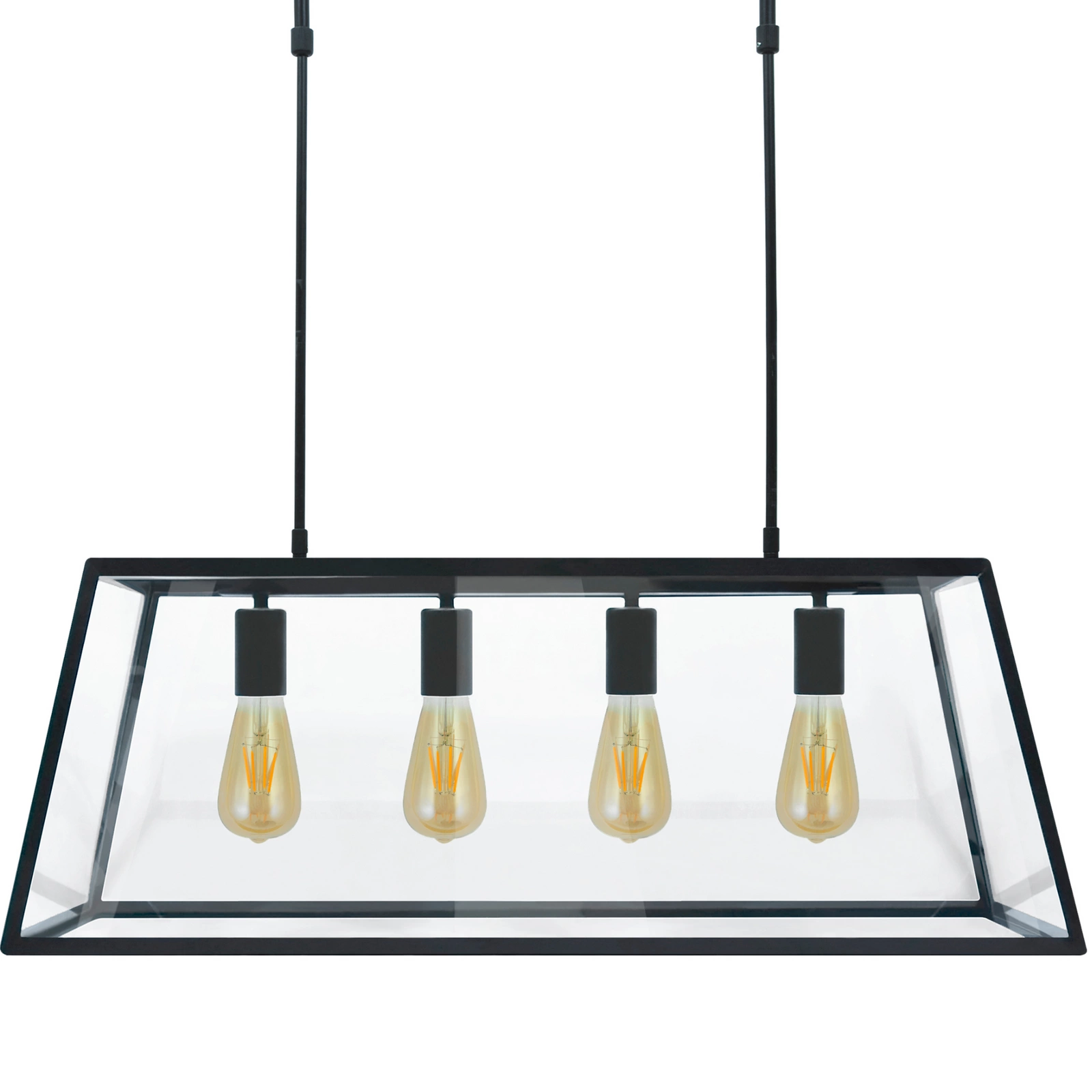 Die Hängelampe GOLDLUX (Polux) aus der Kollektion IL MIO FINLAND in Schwarz passt perfekt in Innenräume mit industrieller oder modernistischer Atmosphäre. Dank der zarten Kombination aus Metallrahmen und klarem, transparentem Glas in einer einfachen, geometrischen Form erzielen Sie einen faszinierenden und einzigartigen Effekt. Die Lampe eignet sich perfekt für das Wohnzimmer, das Esszimmer oder das Wohnzimmer, wo sie eine attraktive Dekoration und eine praktische Lichtquelle darstellt. Die industrielle und beeindruckende Lampe, die wir Ihnen vorstellen, verfügt über bis zu vier austauschbare E27-Lichtquellen (nicht im Lieferumfang enthalten). , wodurch es auch große Räume wunderschön beleuchtet. Auf unserer Website können Sie auch dekorative FILAMENT-Glühbirnen bestellen, die dank der in einem Glaskolben eingeschlossenen dekorativen Glühfäden das Lampenarrangement perfekt ergänzen. Wohnen Sie modisch und stilvoll.