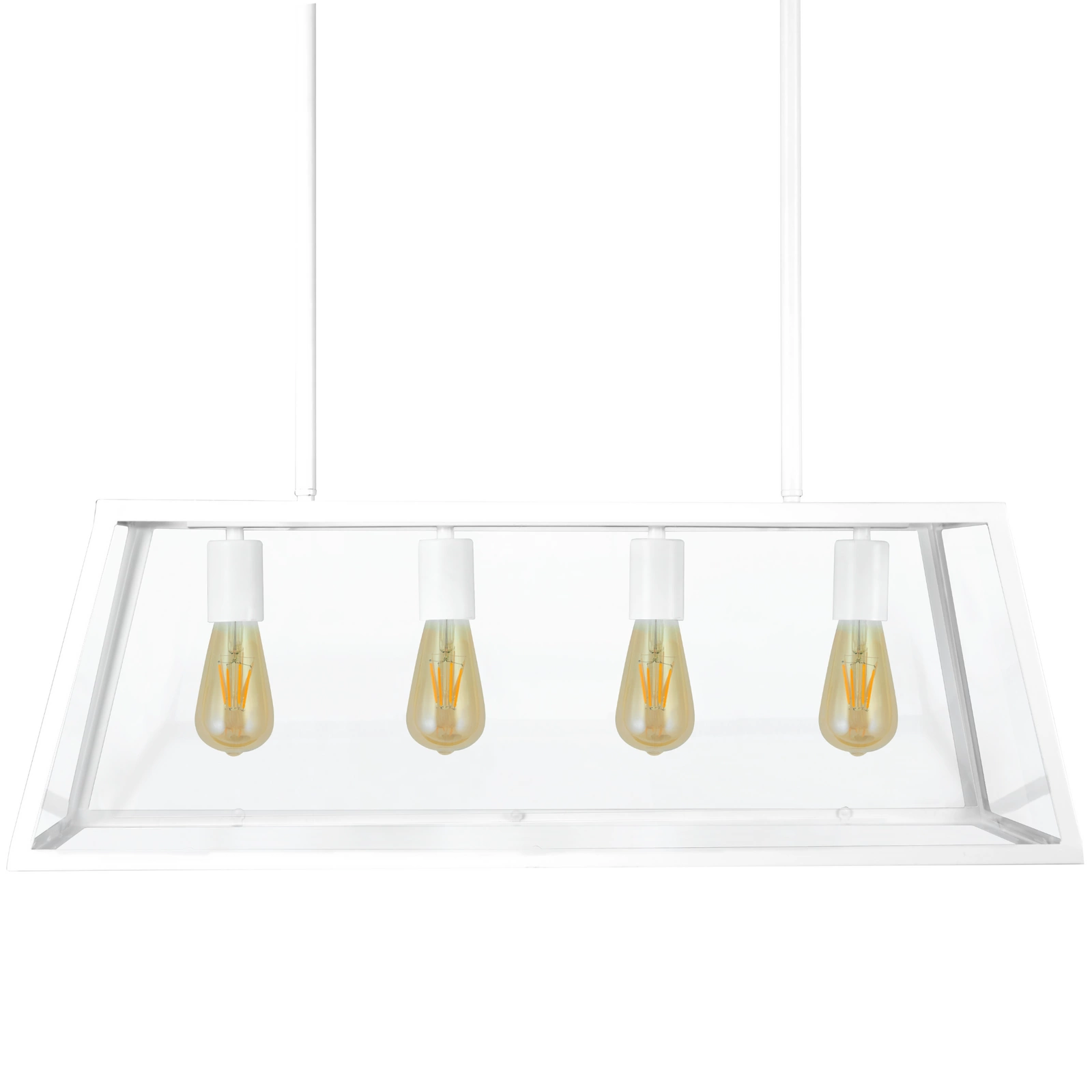 Hängelampe von GOLDLUX(Polux) aus der Kollektion IL MIO FINNLAND in Weiß fügt sich perfekt in industrielle oder modernistische Innenräume ein. Dank der delikaten Kombination aus Metallrahmen und klarem, transparentem Glas in einer einfachen, geometrischen Form erhalten Sie einen faszinierenden und einzigartigen Effekt. Lampe ist ideal für das Wohnzimmer, das Esszimmer oder das Wohnzimmer, wo es eine attraktive Dekoration und eine praktische Lichtquelle sein wird.Die industrielle und auffällige Lampe, die wir Ihnen hier vorstellen, verfügt über bis zu vier E27-Leuchtmittel (nicht im Lieferumfang enthalten), so dass sie auch einen großen Raum wunderbar beleuchten kann. Auf unserer Website können Sie auch dekorative FILAMENT-Glühbirnen bestellen, die dank der in einem Glaskolben eingeschlossenen dekorativen Glühfäden das Lampendesign perfekt ergänzen. Modisch und stilvoll leben.