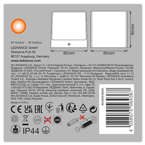 - Steuerbar über die LEDVANCE SMART+ App (mit Android mindestens 8.0 oder iOS 14.0).