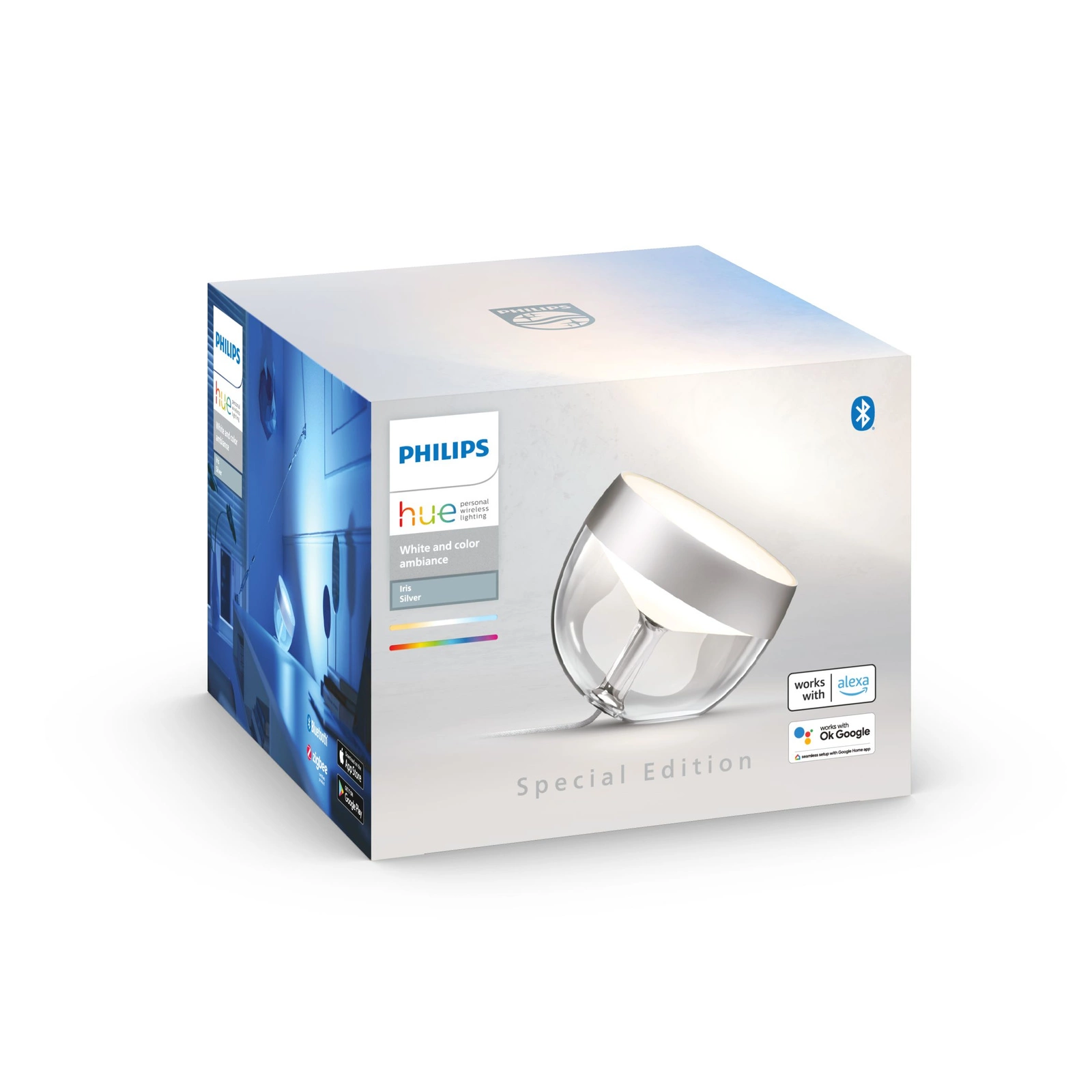 IRIS LED-Schreibtischlampe Silber EU/UK 8.1W CCT RGB PHILIPS HUE Bluetooth Zigbee