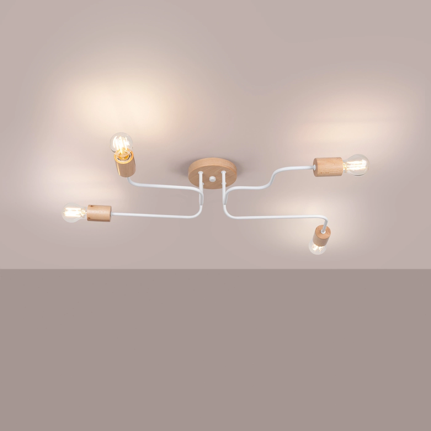 Kronleuchter Deckenleuchte 4x E27 Naturholz Weiß Timbo Peach Puff SL.1665 Sollux