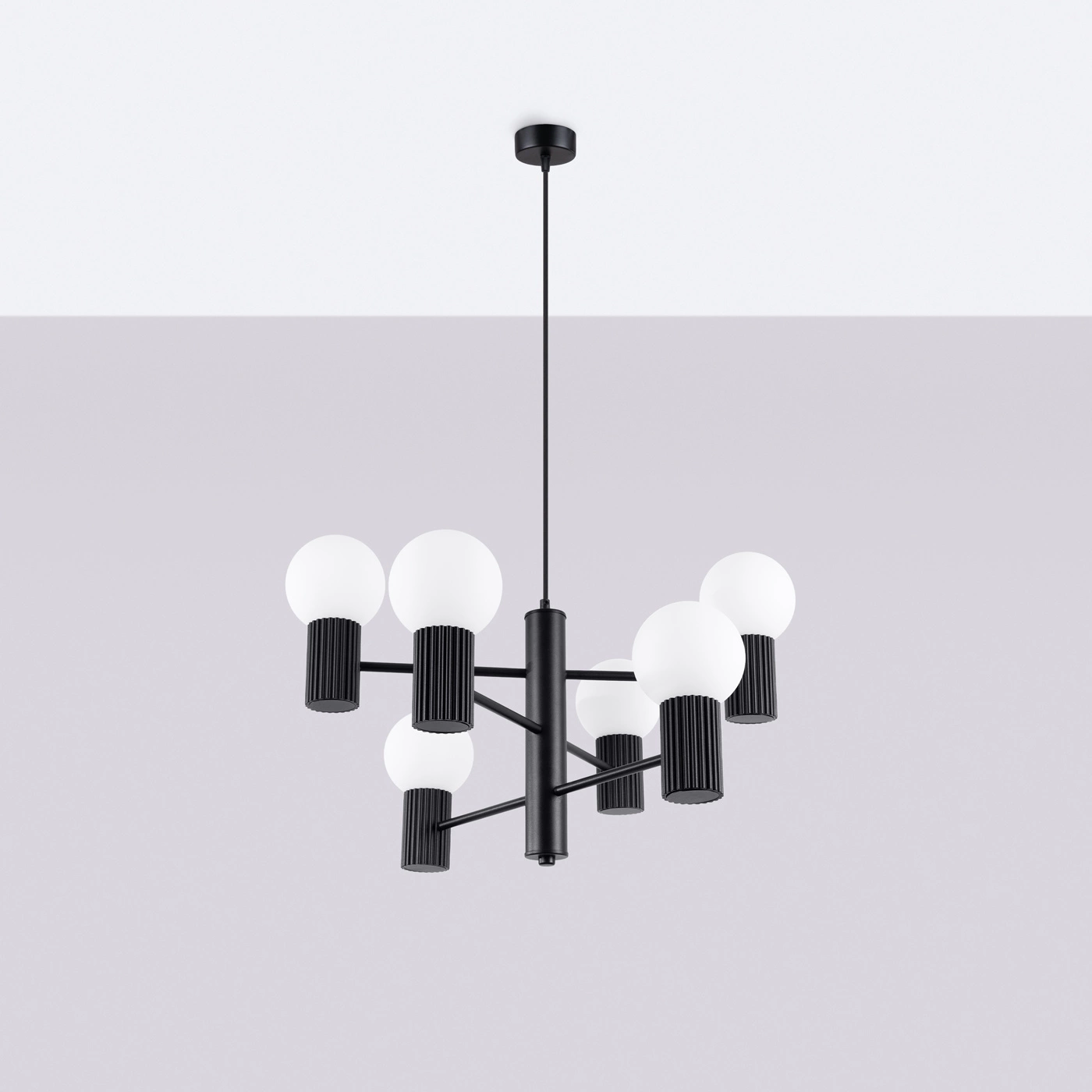 Entdecken Sie die einzigartige "Halo French Sky" Pendelleuchte von Sollux Lighting, die mit Leichtigkeit zum Herzstück eines jeden Interieurs wird. Diese elegante Kronleuchterleuchte besticht durch ihr modernes, schwarzes Aluminiumdesign und sechs Lichtpunkte, die für eine optimale Ausleuchtung des Raumes sorgen. Dank der austauschbaren G9-Leuchtmittel können Sie die Intensität und die Stimmung ganz nach Ihren Wünschen einstellen. Es handelt sich nicht nur um eine Lampe, sondern um eine faszinierende Dekoration, die den Charakter Ihres Wohn-, Schlaf- oder Esszimmers aufwertet.