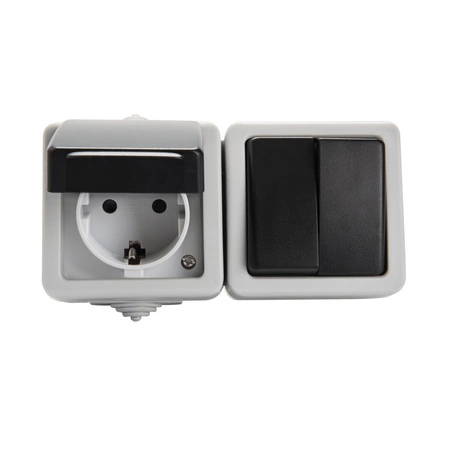 Der rechteckige Schalter ist in einem universellen Grauton gehalten und fügt sich problemlos in jedes Interieur ein. Dank der Schutzart IP54 ist er staub- und spritzwassergeschützt und somit auch unter härteren Außenbedingungen ein unverzichtbares Element.