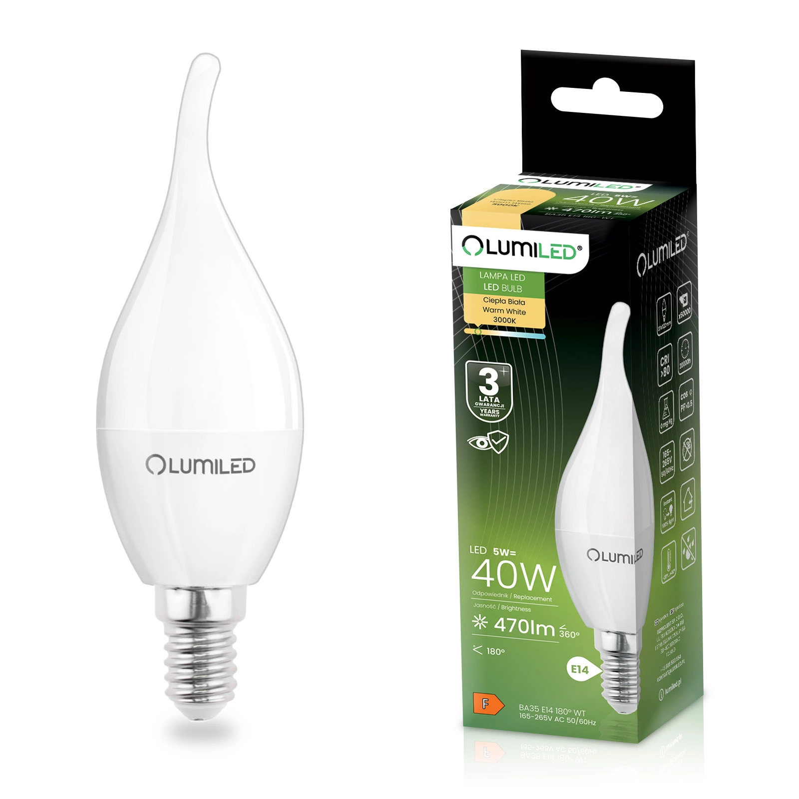 Die LED-Glühbirne der renommierten Marke LUMILED mit E14-Sockel und 5W ist ein hervorragender Ersatz für herkömmliche 40W-Glühbirnen und bietet Energieeinsparungen und eine längere Lebensdauer. Sie gibt Licht mit einem Lichtstrom von 470 Lumen und einer warmen Farbe von 3000K ab und ist damit ideal für die Innenbeleuchtung, wo eine weiche, angenehme Lichtfarbe gewünscht wird. Der Ausstrahlungswinkel von 180° sorgt für eine breite Lichtstreuung und damit für eine gute Ausleuchtung des Raumes. Dank ihrer hochwertigen Verarbeitung hat sie eine Lebensdauer von bis zu 15.000 Stunden, was einer langjährigen Nutzung entspricht. Außerdem arbeitet sie in einem weiten Spannungsbereich von 165-265 V und ist für den Einsatz bei Umgebungstemperaturen von -20°C bis +40°C geeignet. Eine ideale Wahl für alle, die Wert auf Energieeinsparung und Umweltschutz legen.