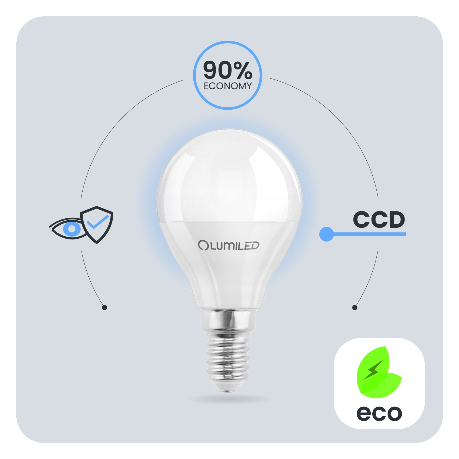 Der in der LED-Glühbirne verwendete CCD-Inverter macht die Glühbirne widerstandsfähig gegen Einbrüche und Spitzen in der Netzspannung. Das Licht flackert und zittert nicht. Der CCD-Konverter sorgt dafür, dass die Glühbirne über einen langen Zeitraum hinweg einwandfrei funktioniert. Bei der Entwicklung der LUMILED-Glühbirnen wurde an den Benutzer gedacht. Eine schlechte Beleuchtungsqualität kann zur Ermüdung der Augen führen. Deshalb verfügen unsere Lampen über die technische Entwicklung Eye Safe, um in jedem Raum eine angenehme und augenfreundliche Beleuchtung zu gewährleisten.