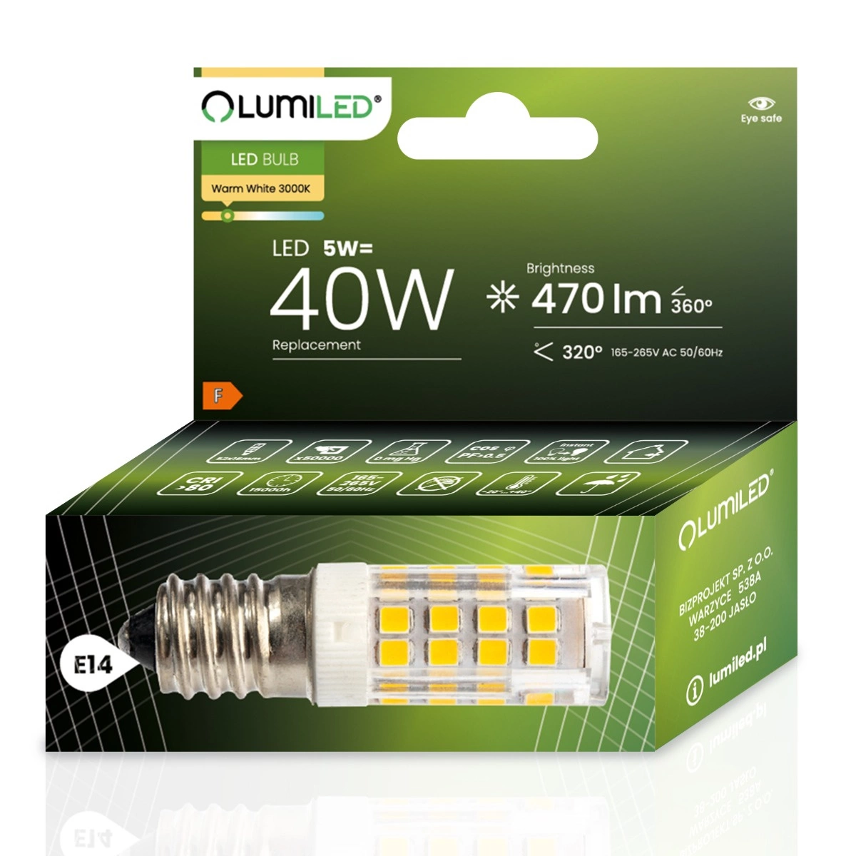 Die LED-Glühbirne der renommierten Marke LUMILED mit E14-Sockel und 5W ist ein hervorragender Ersatz für herkömmliche 40W-Glühbirnen und bietet Energieeinsparungen und eine längere Lebensdauer. Sie gibt Licht mit einem Lichtstrom von 470 Lumen und einer warmen Farbe von 3000K ab und ist damit ideal für die Innenbeleuchtung, wo eine weiche, angenehme Lichtfarbe gewünscht wird. Der Abstrahlwinkel von 320° ermöglicht eine breite Streuung des Lichts und leuchtet den Raum effektiv aus. Dank ihrer hochwertigen Verarbeitung hat sie eine Lebensdauer von bis zu 15.000 Stunden, was einer langjährigen Nutzung entspricht. Außerdem arbeitet sie in einem weiten Spannungsbereich von 165-265 V und ist für den Einsatz bei Umgebungstemperaturen von -20°C bis +40°C geeignet. Eine ideale Wahl für alle, die Wert auf Energieeinsparung und Umweltschutz legen.