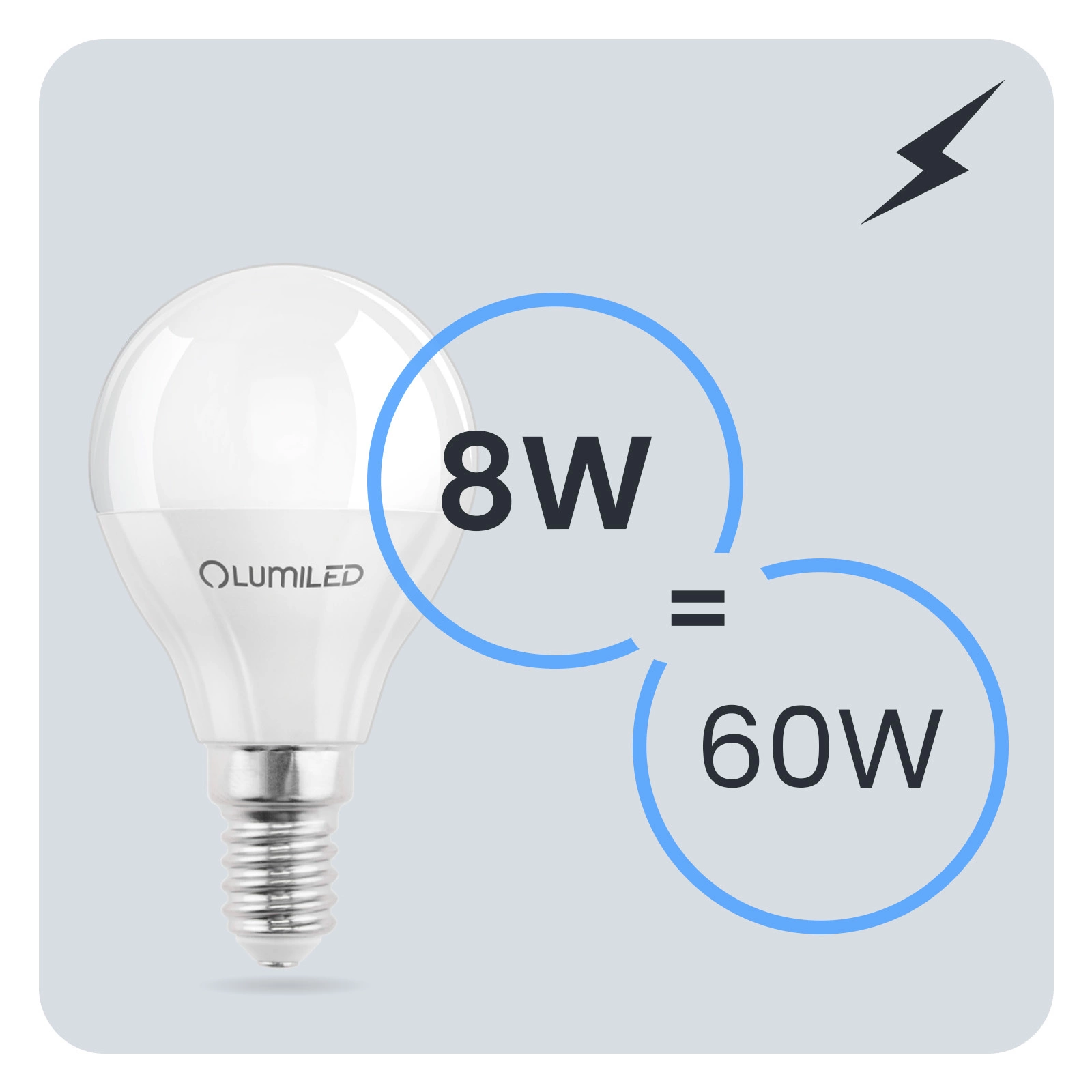 Lampen E14, Glühbirne P40 8W = 60W 806lm 4000K 180° neutral LUMILED