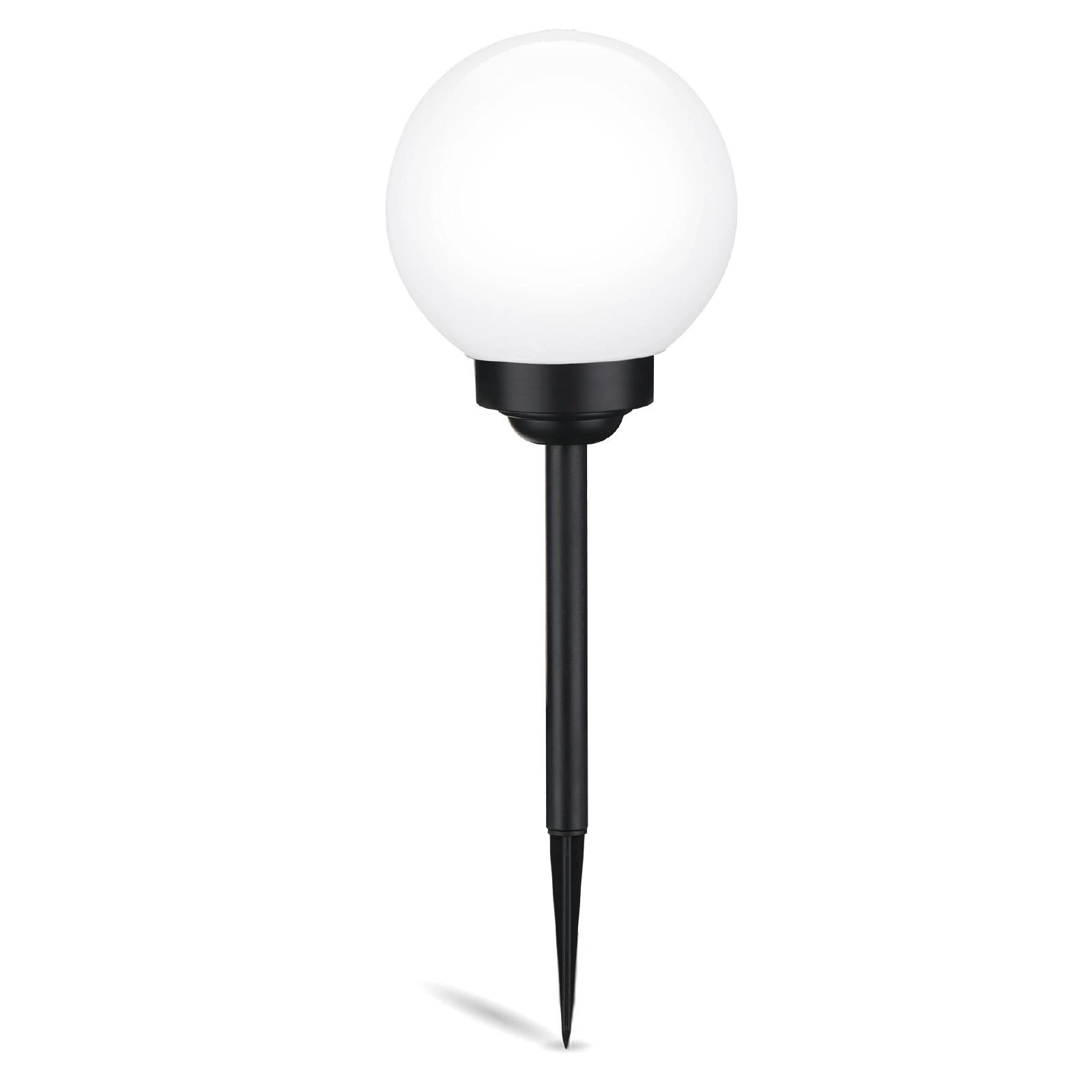 Die Solarlampe ATRIS mit einem Durchmesser von 20 cm von der renommierten Beleuchtungsmarke LUMILED bringt mit ihrem mehrfarbigen Licht Eleganz und eine besondere Stimmung in Ihren Garten. Die schlanken, schwarzen Zinken sorgen für Stabilität und unterstreichen den modernen und stilvollen Look der Lampe. Der runde, milchige Lampenschirm gibt ein weiches, diffuses Licht in verschiedenen Farben ab, das ein eindrucksvolles Farbenspiel erzeugt. Das stilvolle Design eignet sich perfekt für die Beleuchtung von Wegen, Gärten und Terrassen und verbindet Funktionalität mit Ökologie.