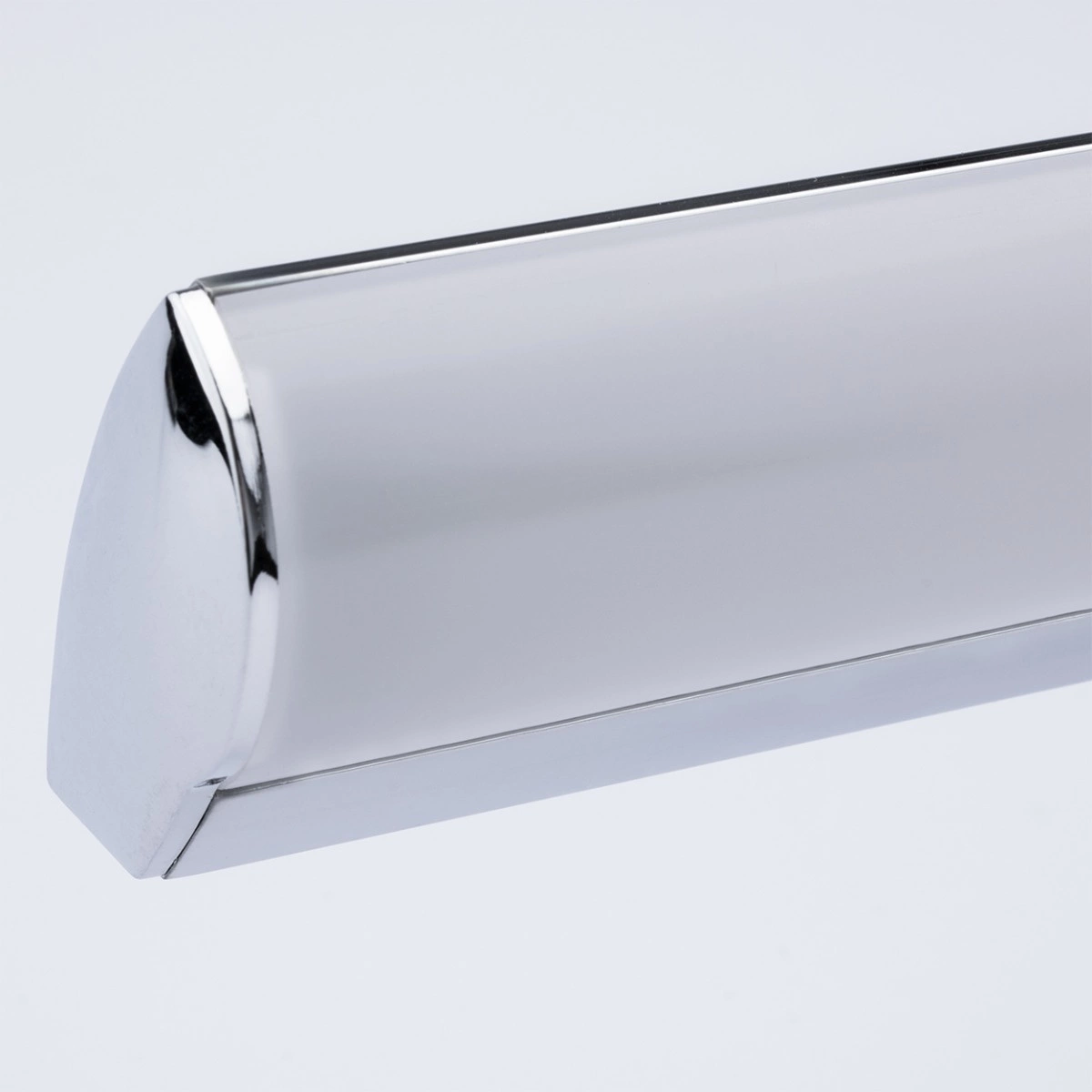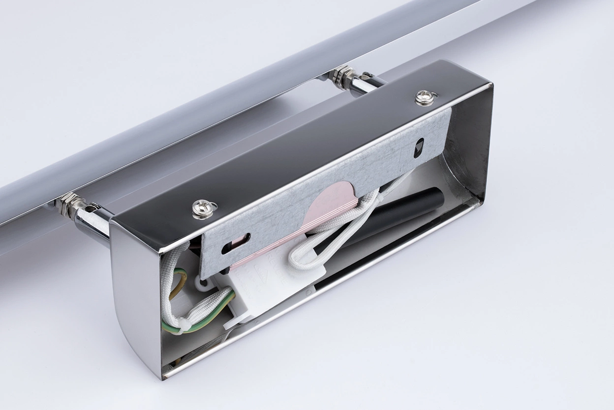 Die verchromte Wandleuchte mit eingebauten 12W LEDs ist eine hochwertige, energiesparende Lampe, die bei geringem Energieverbrauch einen Lichtstrom von 860lm abgibt . Es handelt sich also um eine effiziente Lichtquelle, die im Betrieb nur wenig Strom verbraucht.