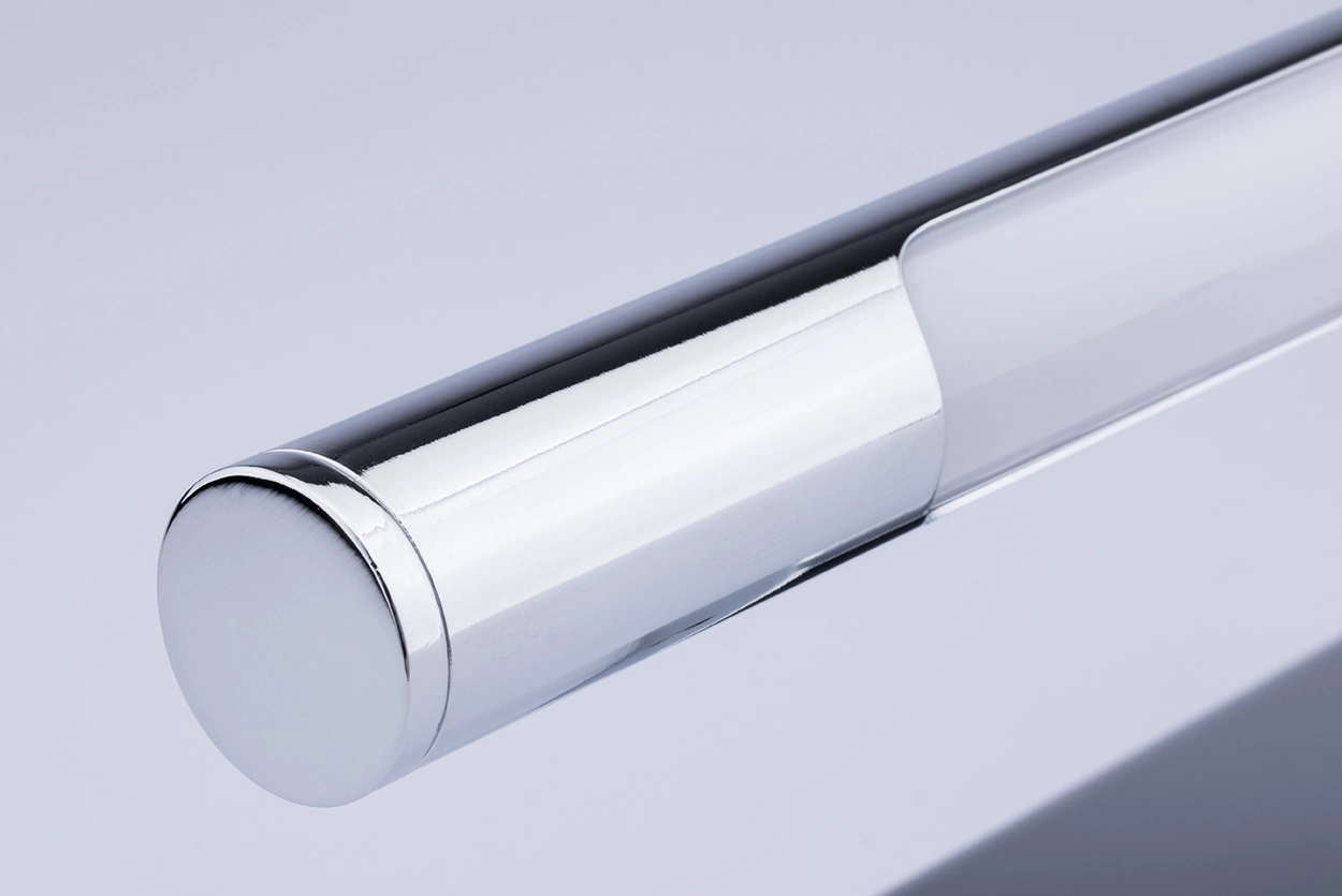 Die verchromte Wandleuchte mit eingebauten 12W LEDs ist eine hochwertige, energiesparende Lampe, die bei geringem Energieverbrauch einen Lichtstrom von 860lm abgibt . Es handelt sich also um eine effiziente Lichtquelle, die im Betrieb nur wenig Strom verbraucht.