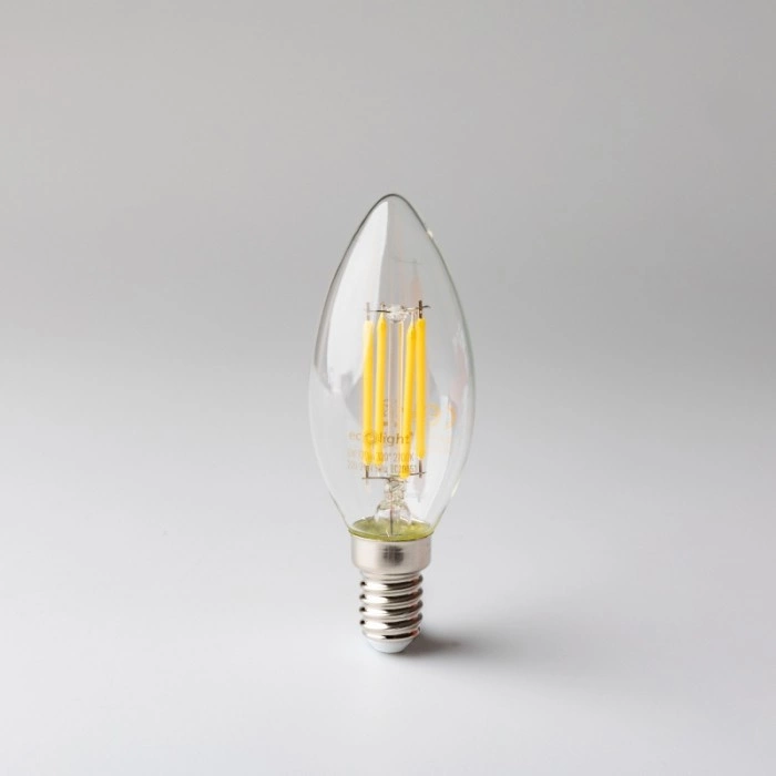 Entdecken Sie eine neue Lichtqualität mit der LED Candle B35 E14 6W 720lm 2700K Warm FILAMENT Glühbirne von Ecolight. Ideal, um eine gemütliche Atmosphäre zu schaffen, dank ihrer Lichtfarbe von 2700K. Diese Glühbirne liefert einen beeindruckenden Lichtstrom von 720 Lumen, die für eine hervorragende Ausleuchtung in jedem Winkel Ihres Hauses sorgen. Ausgestattet mit einem transparenten Glasschirm, gibt sie ein angenehmes, warmes Licht ab, das eine wunderbare Aura der Ruhe und Entspannung schafft.