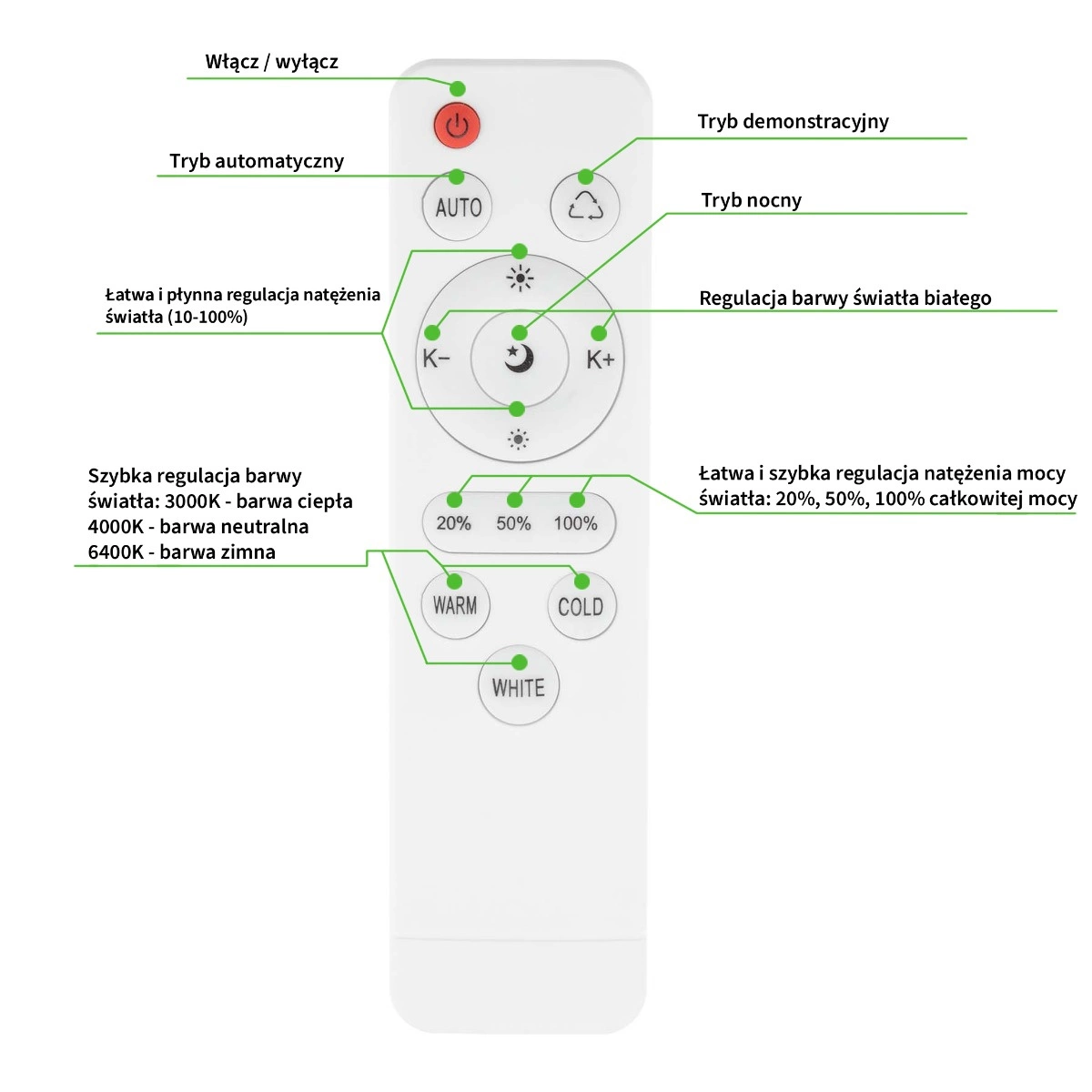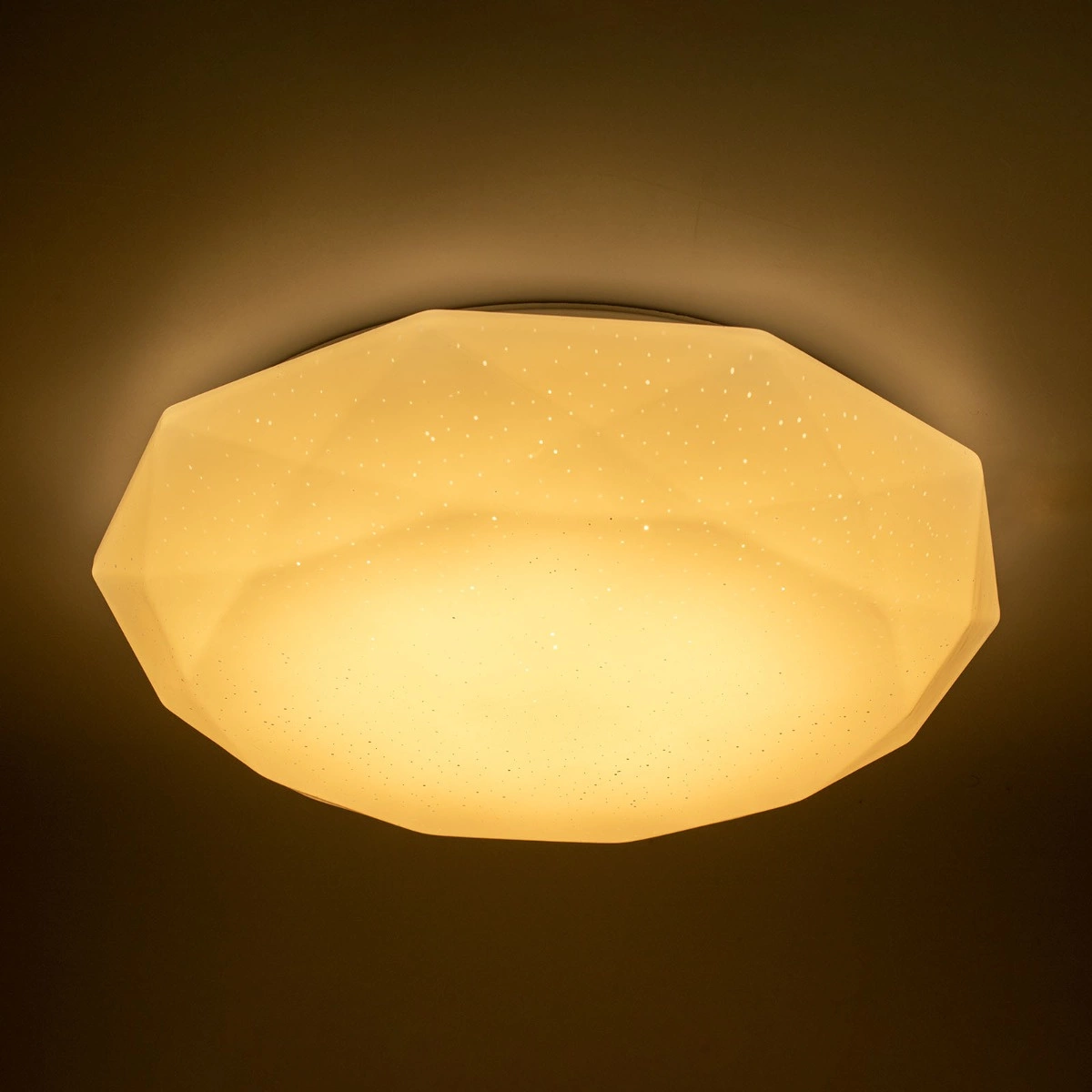Die LED-Deckenleuchte DIAMOND mit moderner Optik, die an einen Diamanten erinnert, ist eine hochwertige LED-Lichtquelle. Der unbestrittene Vorteil dieser einzigartigen Deckenleuchte besteht darin, dass sie bequem per Fernbedienung gesteuert werden kann . Die runde Deckenleuchte verfügt über eine integrierte LED-Lichtquelle , die 48W Licht abgibt. Mit der Fernbedienung können wir das Licht der Deckenleuchte ganz einfach an unsere Bedürfnisse anpassen, ohne unseren Platz verlassen zu müssen. Eine an einer zentralen Stelle aufgehängte Deckenleuchte ist eine schöne Dekoration und eine perfekte Ergänzung für moderne oder traditionelle Innenräume, indem sie ihnen Charme verleiht und deren Aussehen verändert.