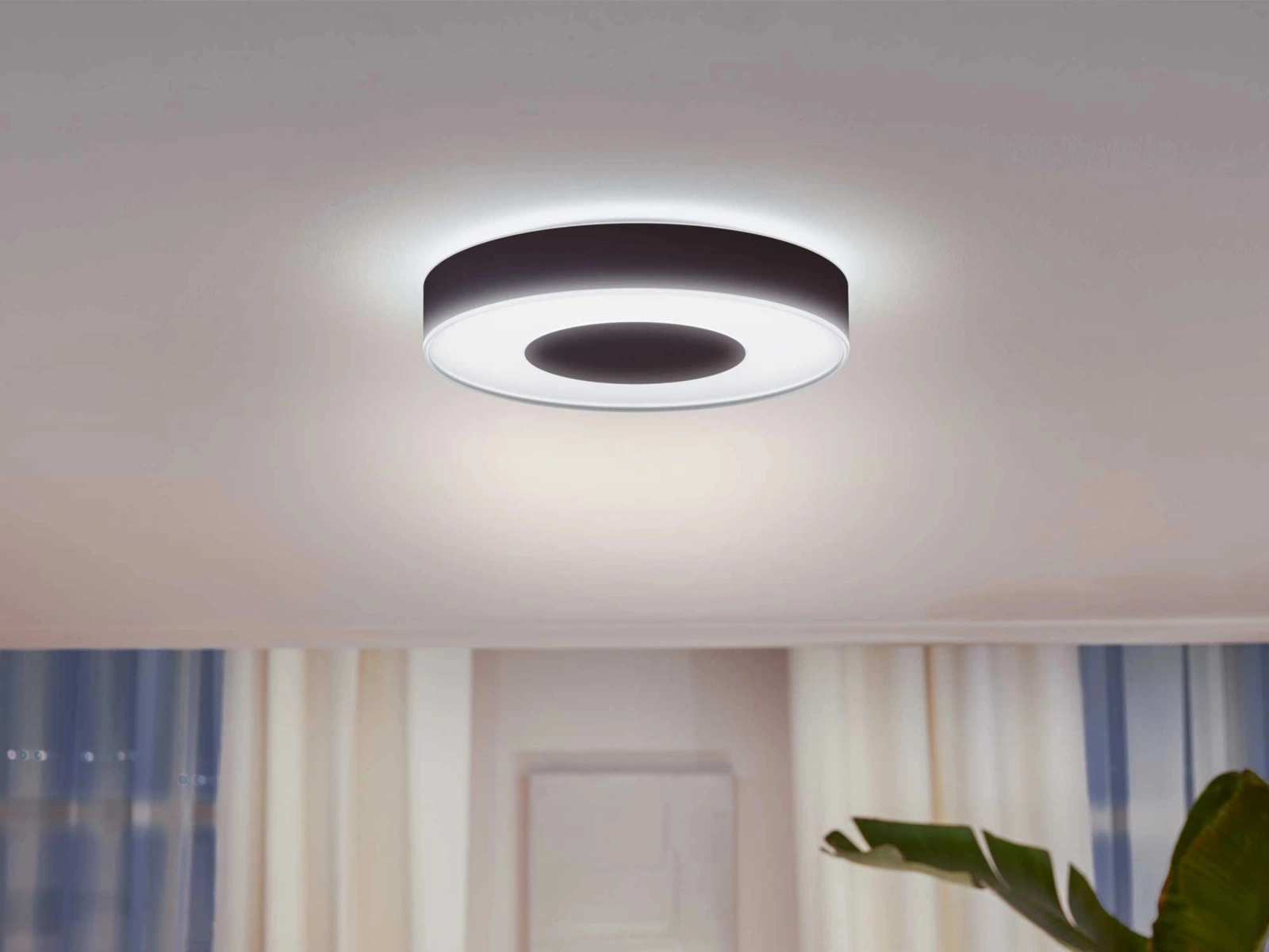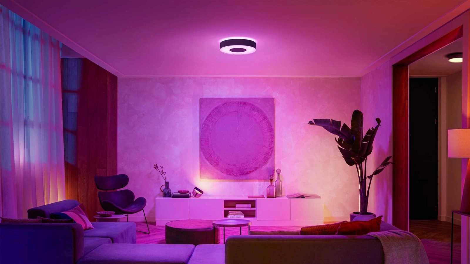 HUE LED-Deckenfluter in der Beleuchtungsindustrie bekannt und respektiert Philips. Leuchte mit einer integrierten LED-Lichtquelle von 52,5W und sehr effiziente Lichtleistung - 3700lm, strahlt warmes, angenehmes und entspannendes Licht, mit 16 Millionen RGB-Farben i eine breite Palette von weißem Licht, mit denen wir für jede Gelegenheit eine passende Stimmung schaffen können. Neben der Steuerung des Lichts über die gesamte Farbtemperaturskala verfügt die Lampe über eine sofortiges Dimmen. HUE Plafond als farbiger Lichtakzent wird es den Raum und jedes Element der Inneneinrichtung erhellen.