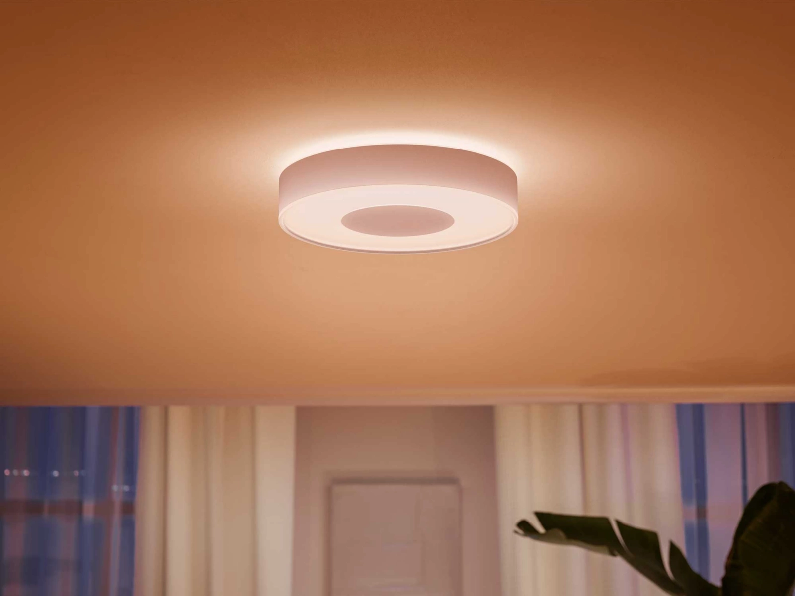 HUE LED-Deckenfluter in der Beleuchtungsindustrie bekannt und respektiert Philips. Leuchte mit einer integrierten LED-Lichtquelle von 33,5W und sehr effiziente Lichtleistung - 2350lm, strahlt warmes, angenehmes und entspannendes Licht, mit 16 Millionen RGB-Farben i eine breite Palette von weißem Licht, mit denen wir für jede Gelegenheit eine passende Stimmung schaffen können. Neben der Steuerung des Lichts über die gesamte Farbtemperaturskala verfügt die Lampe über eine sofortiges Dimmen. HUE Plafond als farbiger Lichtakzent wird es den Raum und jedes Element der Inneneinrichtung erhellen.