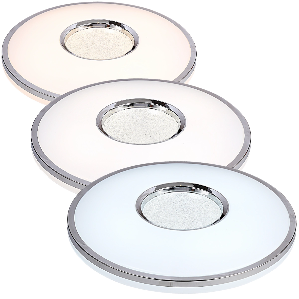 Die Deckenleuchte Modell Leon von Polux ist eine moderne LED-Deckenleuchte aus hochwertigen Materialien, die sich durch ein modernes und modisches Erscheinungsbild auszeichnet. Die Leuchte ist mit leistungsstarken, energiesparenden LED-Lichtquellen mit einer Gesamtleistung von 36 W ausgestattet und bietet die Möglichkeit, die Lichtfarbe per Fernbedienung von warmweiß 2700 K auf kaltweiß 6500 K zu ändern .