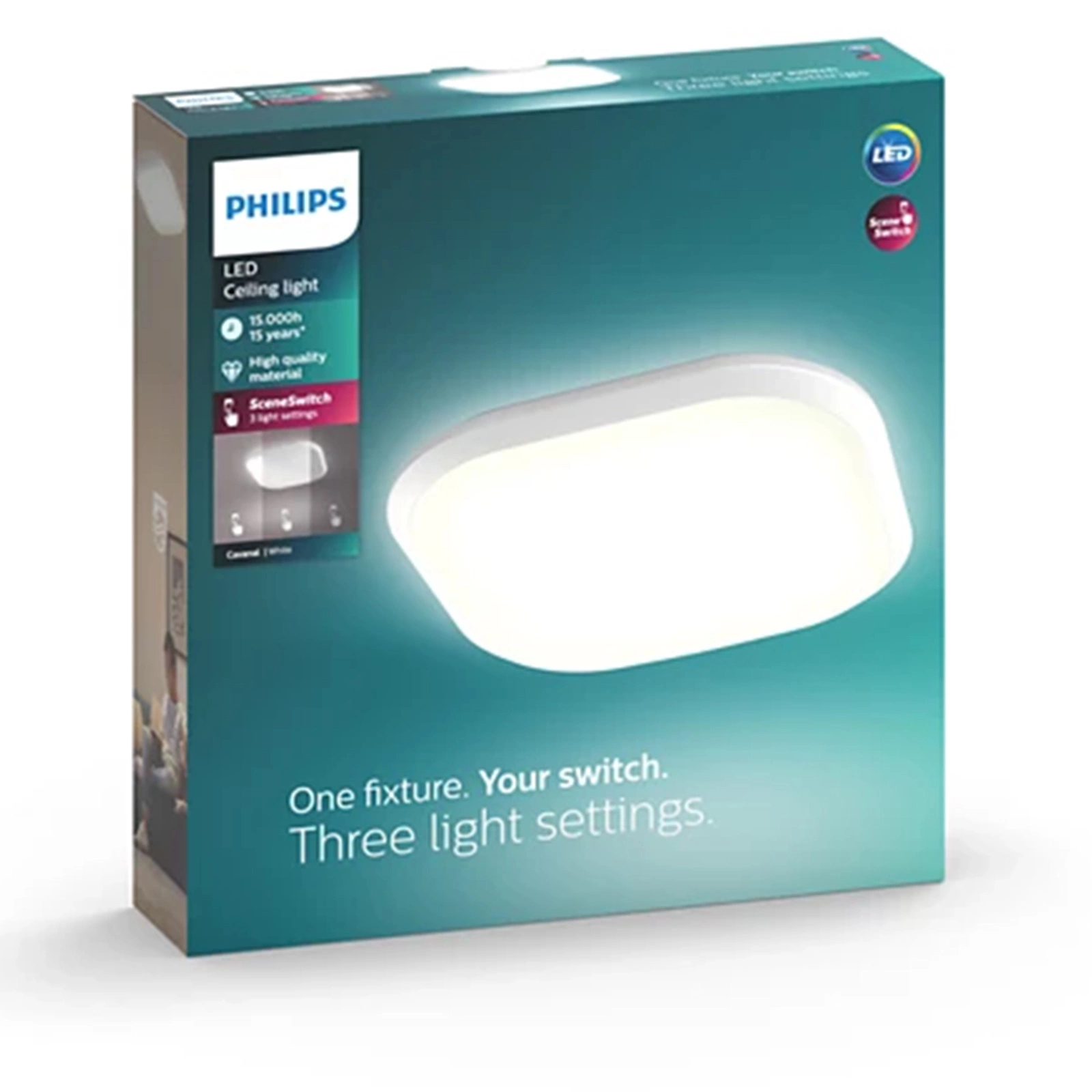 Die Philips CAVANAL 40K Deckenleuchte ist mit der SceneSwitch Brightness Change-Funktion ausgestattet . Dank dieser Funktion können Sie die Helligkeit der LEDs anpassen, ohne einen Dimmer installieren zu müssen. Mit einem normalen Lichtschalter können Sie ganz einfach zwischen drei Helligkeitsstufen wechseln. Bitte beachten Sie, dass diese Lampe nicht für die Verwendung mit einem Dimmer vorgesehen ist.