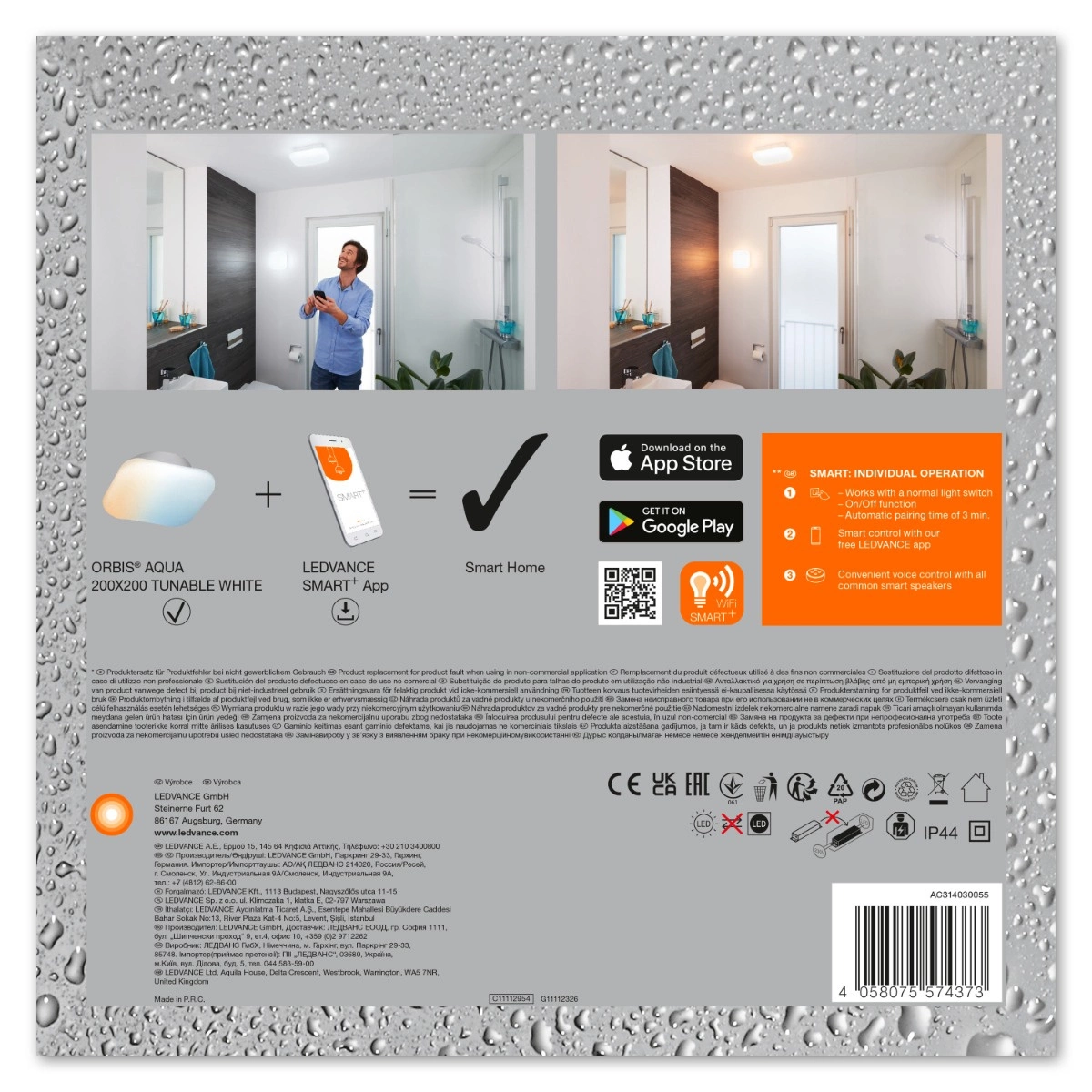 - Steuerbar über die LEDVANCE SMART+ App (mit Android mindestens 8.0 oder iOS 14.0).
