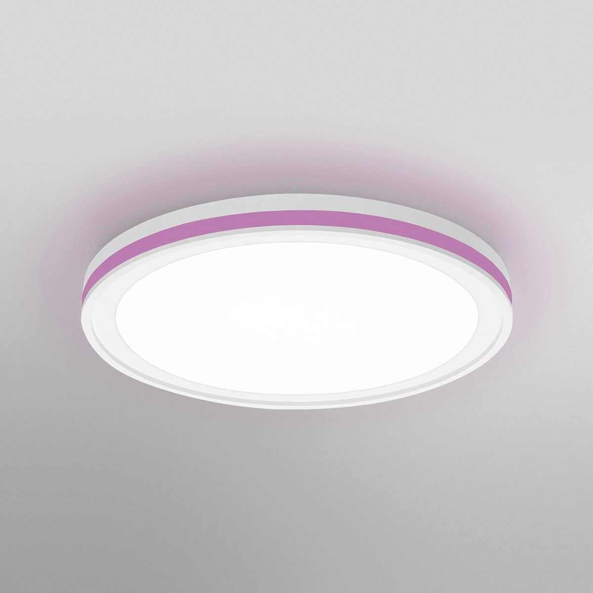 Der moderne Orbis Ledvance LED-Plafond ist die perfekte Lösung für alle, die Wert auf fortschrittliche Technologie und Vielseitigkeit legen. Mit einer maximalen Nennleistung von 28W und einem Lichtstrom von 900lm garantiert die Lampe eine effektive Beleuchtung mit variabler Lichtfarbe (CCT) und einer reichen RGB-Farbpalette. Ein hoher Farbwiedergabeindex (Ra) von 80 sorgt für eine originalgetreue Farbwiedergabe, und außerdem bietet die dimmbare Leuchte die volle Kontrolle über die Raumatmosphäre.