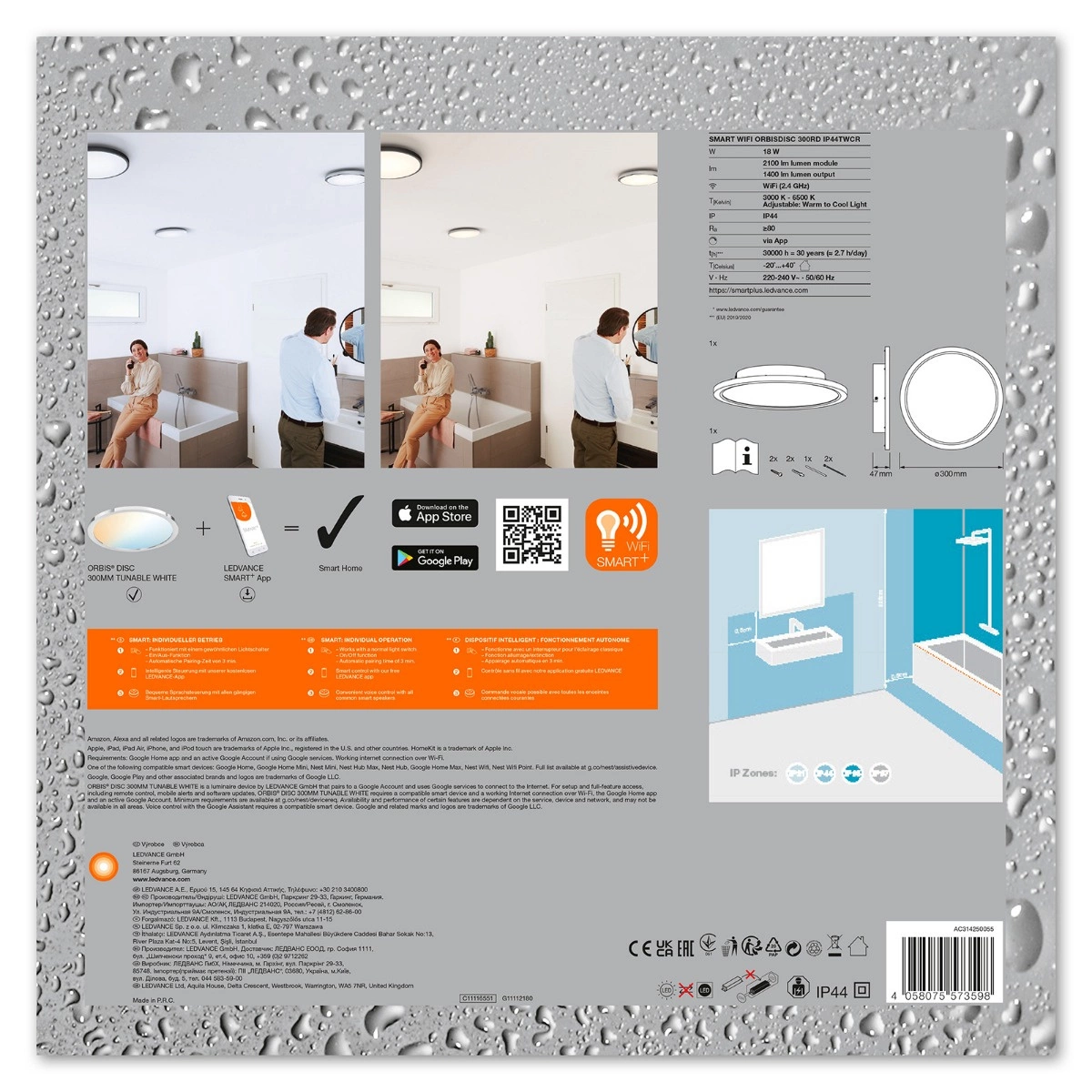 - Steuerbar über die LEDVANCE SMART+ App (mit Android mindestens 8.0 oder iOS 14.0).