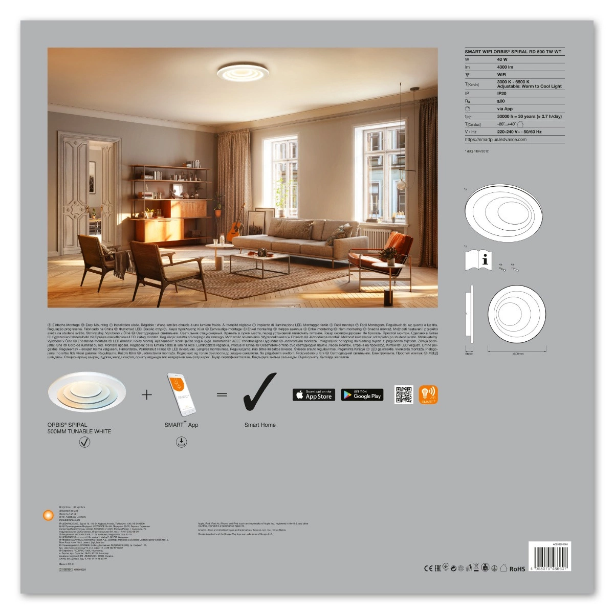 - Steuerbar über die LEDVANCE SMART+ App (mit Android mindestens 8.0 oder iOS 14.0).