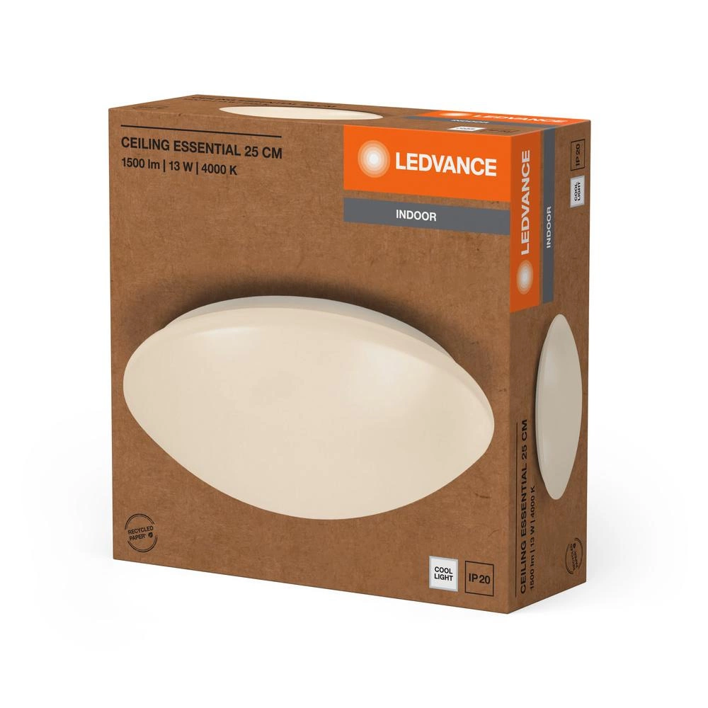 Die Essentials Ledvance LED Plafond Deckenanbauleuchte ist eine moderne weiße Leuchte, die sich perfekt in eine Vielzahl von Innenräumen einfügt. Dank der Aufbaumontage ist sie einfach zu installieren. Sie hat eine Leistung von 13 W und einen Lichtstrom von 960 lm, was eine ausreichende Beleuchtung für jeden Raum garantiert. Die Leuchte mit einer Farbtemperatur von 4000K bietet eine weiße, neutrale Farbe, die sowohl zum Arbeiten als auch zum Entspannen geeignet ist.