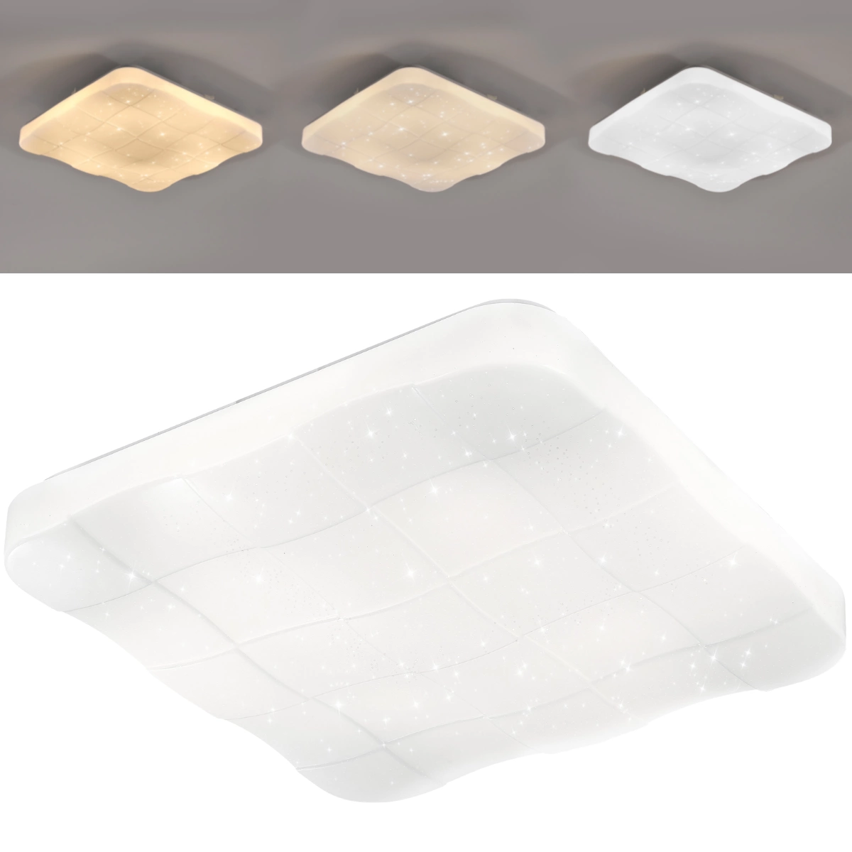 Die LEDs sind unter einem milchigen Lampenschirm mit sanftem Schachbrettmuster verborgen, der sanfte Reflexionen erzeugt und für ein gleichmäßig gestreutes Licht sorgt, wodurch der negative Blendeffekt eliminiert wird. Eine solide und bewährte Konstruktion sowie ein hervorragendes Preis-Leistungs-Verhältnis machen die vorgestellte Deckenleuchte nicht nur für Häuser und Wohnungen, sondern auch für Hotels und andere Gewerberäume usw. geeignet. Ein zusätzlicher Vorteil ist die im Lieferumfang enthaltene Fernbedienung Das Set ermöglicht Ihnen eine komfortable Lichtsteuerung. Wenn Sie nach einem Rahmen mit einer anderen Stärke oder Form suchen, schauen Sie sich unsere anderen Produkte an.