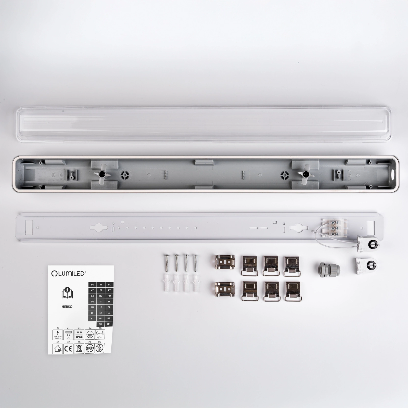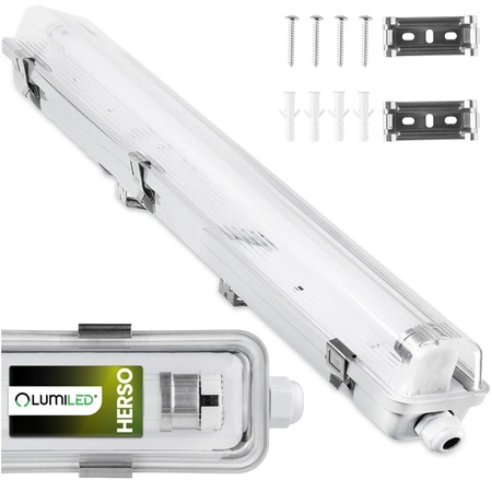 Die hermetische Leuchte LUMILED HERSO T8 LED 1x60cm ist eine vielseitige und langlebige Lösung für die Beleuchtung von Räumen, die eine erhöhte Widerstandsfähigkeit erfordern. Dank der Dichtheit IP65 schützt das Gehäuse das Innere vor Staub und Feuchtigkeit und ist somit ideal für Garagen, Keller, Autowaschanlagen, Heizungsräume und Produktionshallen. Das Design ermöglicht eine schnelle Installation an der Decke oder an der Wand, und die Möglichkeit, jede beliebige 60-cm-LED-T8-Leuchtstofflampe zu verwenden, erlaubt es Ihnen, die Farbe und die Lichtleistung an Ihre Bedürfnisse anzupassen. Sie ist eine wirtschaftliche und zuverlässige Wahl für alle, die auf praktische Beleuchtung angewiesen sind.