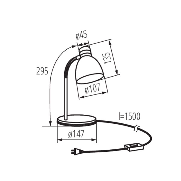 ZARA-Lampe ist ein Ein/Aus-Schalter vorhanden lED-Schreibtischlampe marken Kanlux, das sich durch ein klassisches und einfaches Design auszeichnet. Die Lampe ist für den Einsatz von energiesparenden LED-Leuchtmitteln mit kleinem Gewinde angepasst (E14) und einer Leistung von nicht mehr als 40W. Das Produkt besteht aus stahl ist zusätzlich mit einem oben biegsamen Arm ausgestattet, der in jede beliebige Position gebogen werden kann, was es erleichtert, den Lichteinfall optimal einzustellen. Ideal als Zusatzbeleuchtung für Ihre Räume oder als Nachttischlampe.