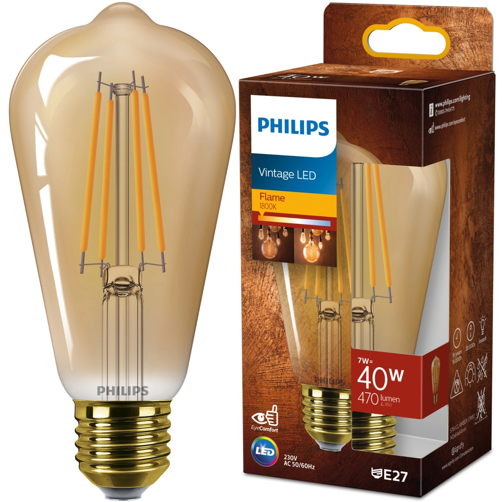 LED Edison E27 ST64 Glühbirne 7W = 40W 470lm 1800K Warm Filament Amber PHILIPS
