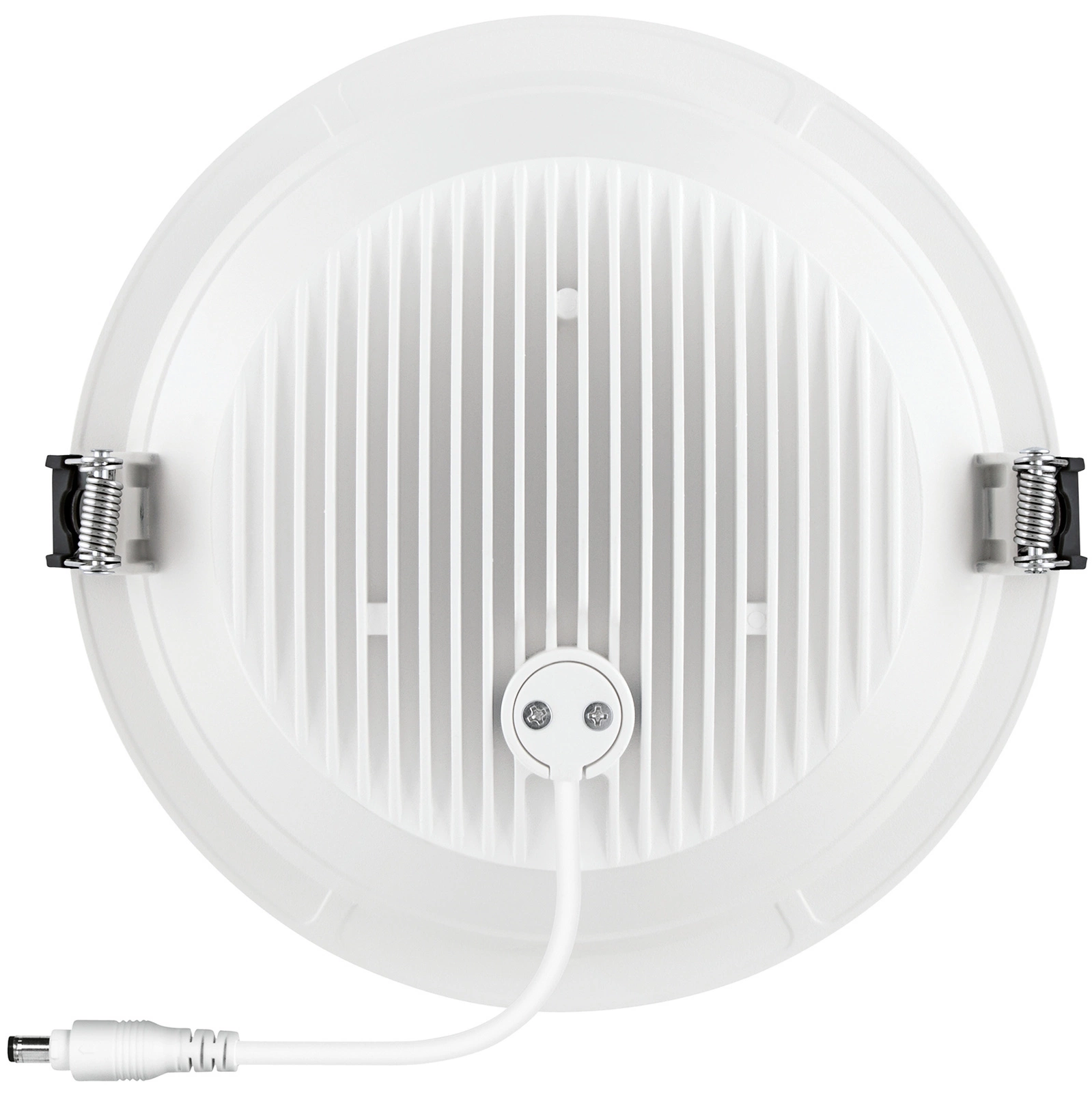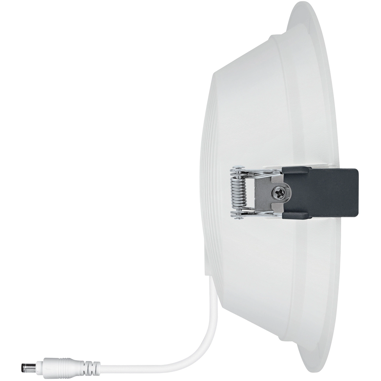 Die Leuchte mit einem Deckenstrahler und der Schutzart IP44 ist sowohl für Innenräume als auch für Feuchträume geeignet. Der Lichtabstrahlwinkel von 100° sorgt für eine gleichmäßige Flächenausleuchtung. Ausgestattet mit einem integrierten LED-Leuchtmittel ist sie mit 220-240V Netzspannung sofort einsatzbereit. Die einfache Installation wird durch schraubenlose Klemmen gewährleistet, und die kompakten Abmessungen (Einbaudurchmesser 200 mm, Einbautiefe 120 mm) ermöglichen die Einbindung in viele Beleuchtungsprojekte.