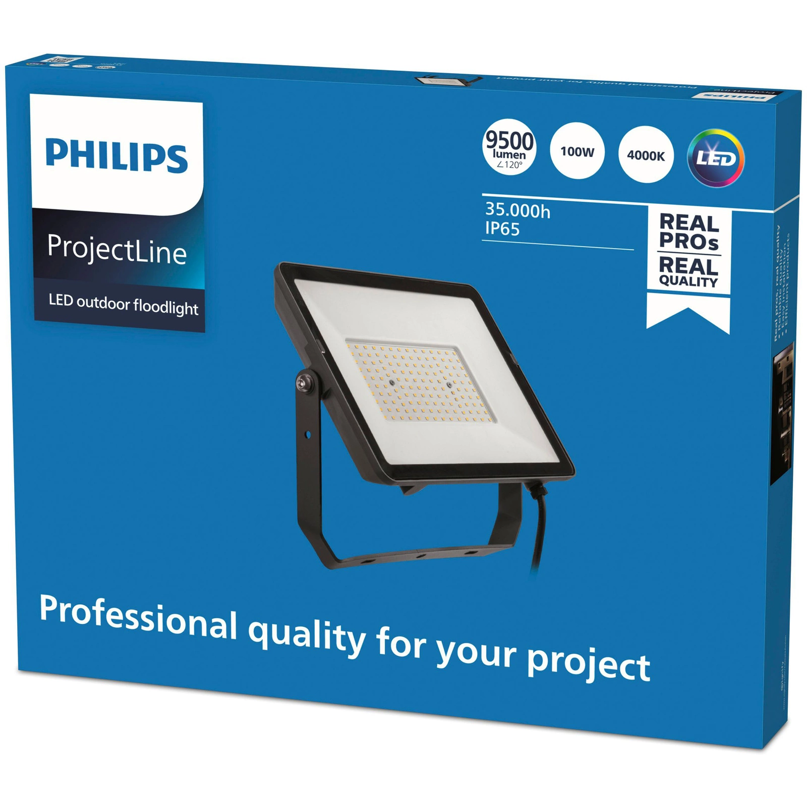 Entdecken Sie Zuverlässigkeit und Modernität mit unserem 100-W-LED-Strahler, der einen beeindruckenden Lichtstrom von 9500 lm bietet. Das schlichte schwarze Design der ProjectLine-Reihe von Philips passt perfekt zum modernen Stil, während eine Lebensdauer von bis zu 35.000 Stunden eine lange Nutzung ohne häufiges Auswechseln garantiert. Ausgestattet mit einer neutralweißen Lichtfarbe von 4000 K wird er zu einem unverzichtbaren Bestandteil Ihres Außenbereichs.