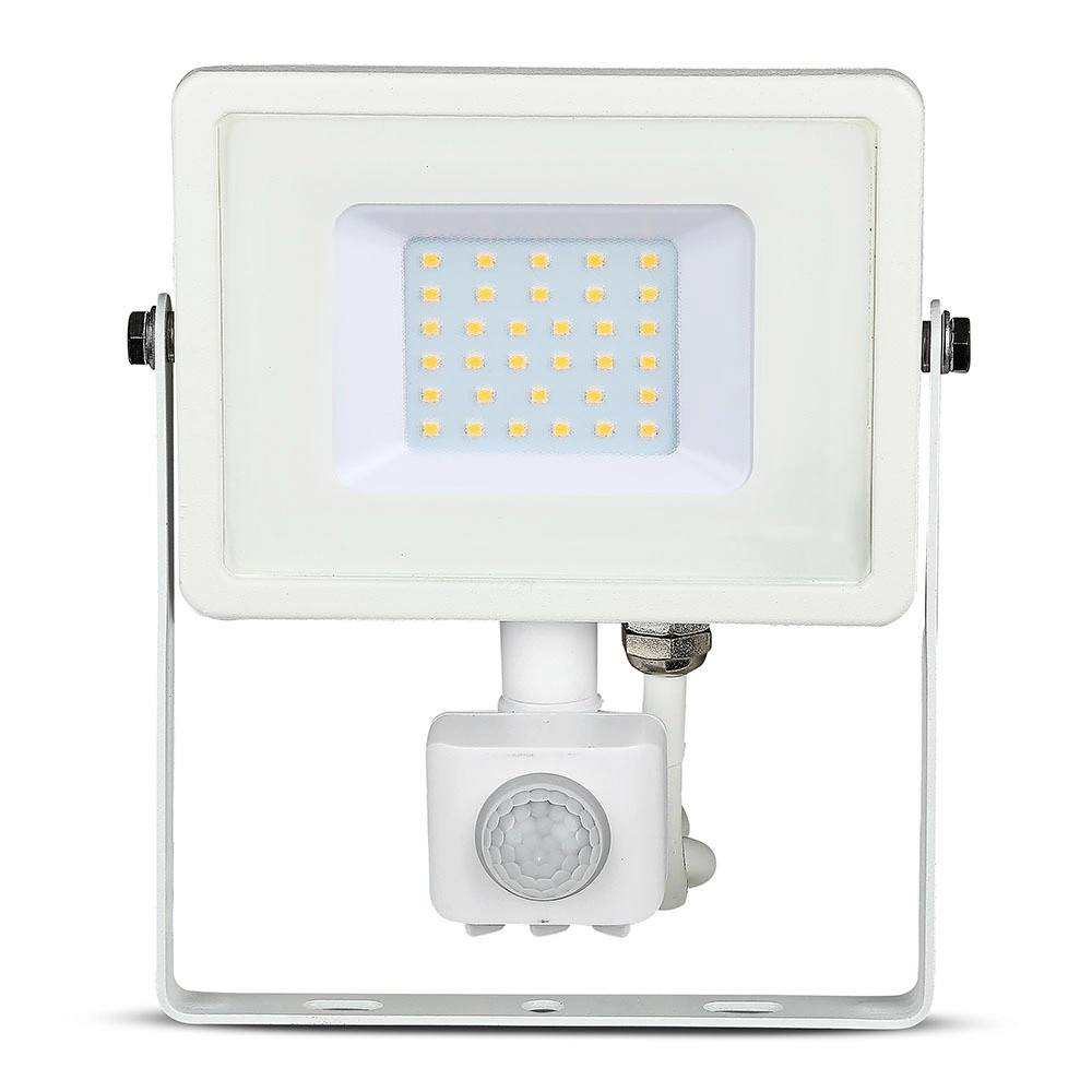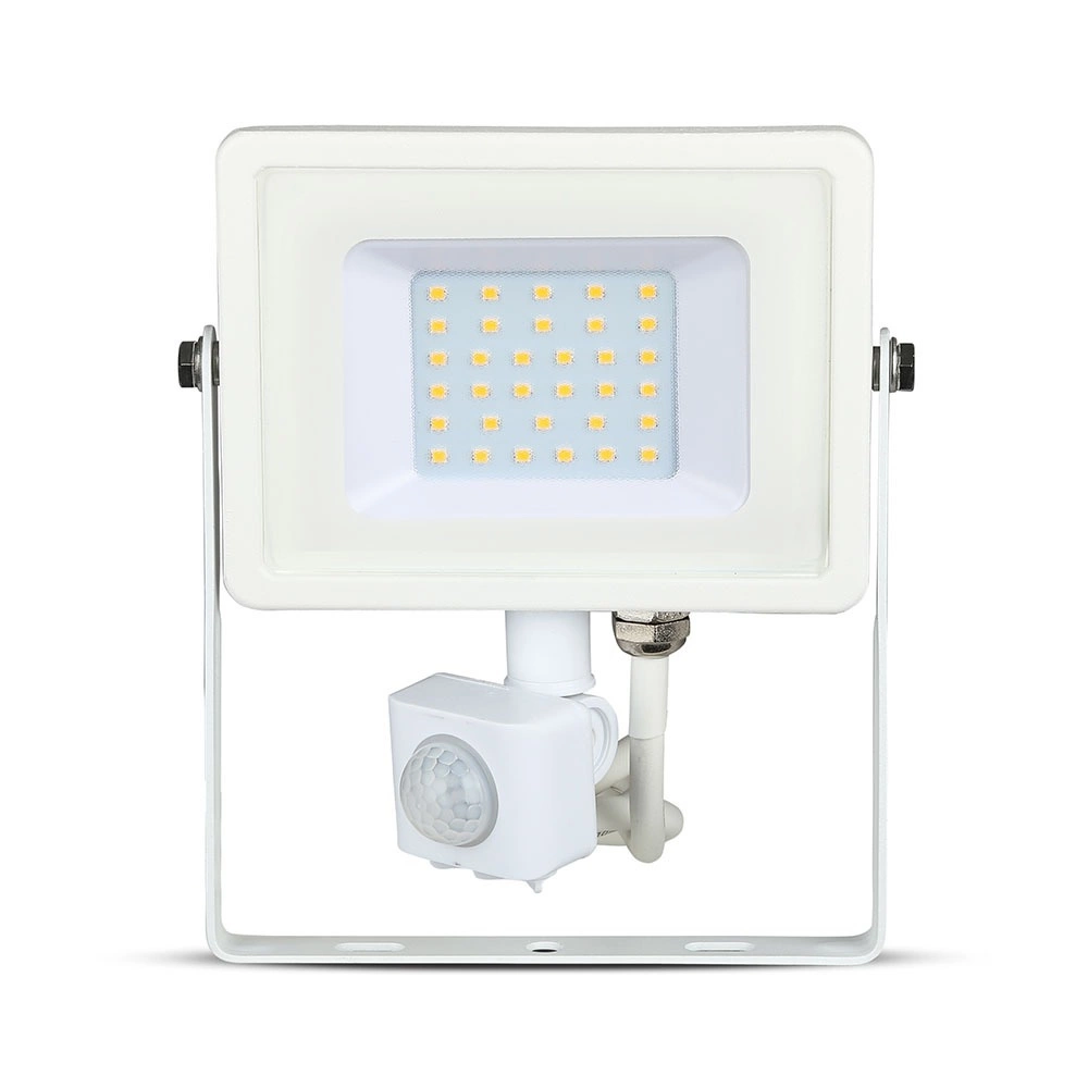 LED Fluter 30W 2400lm 3000K IP65 Weiß mit Bewegungssensor und CUT-OFF-Funktion Samsung Chip VT-30-SW V-TAC